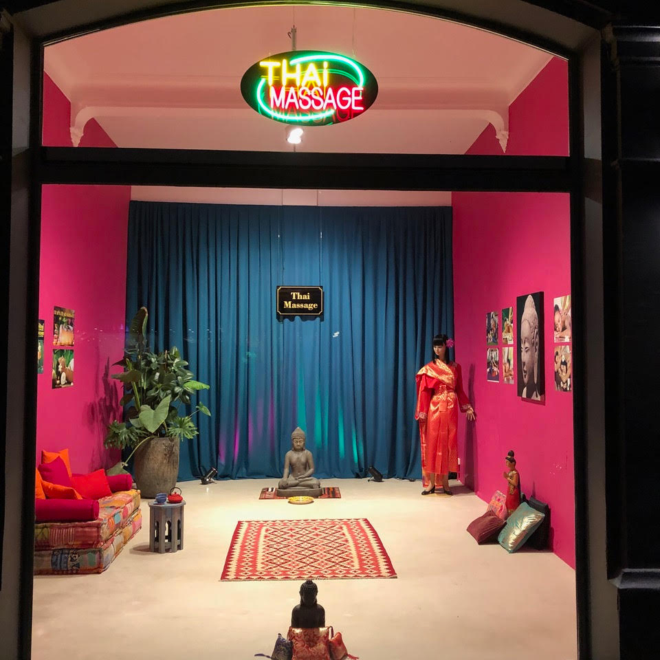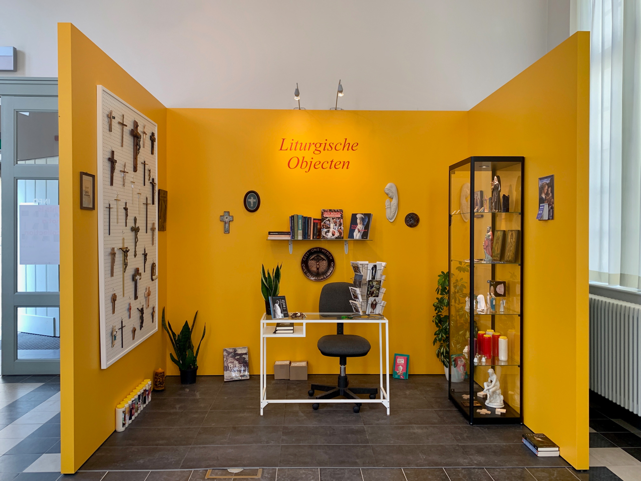 Because I usually execute 'Installations', 'Compositions' and 'Sorry's' in the art spaces at my disposal, and because it makes no sense to take a look at a 'Supermarket' installation, an 'Atomic Bomb Shelter' or a 'Thai Massage' at my place. For large 'Installations' I use a loan system from companies or institutions: if the works go unsold, they return to those companies.