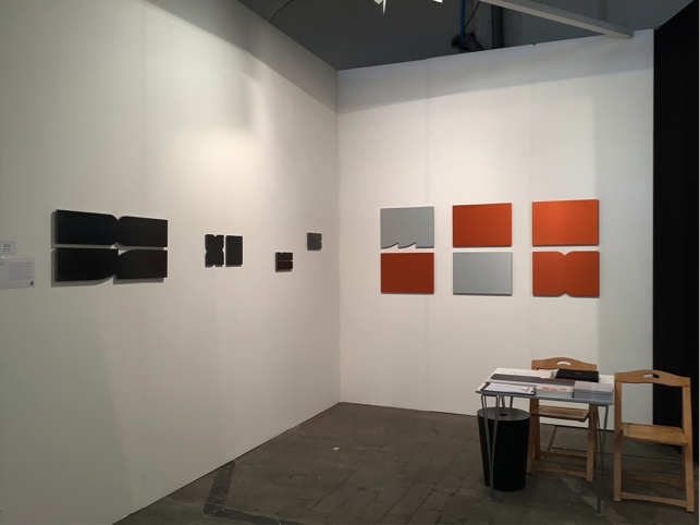 At the booth of Gallery Helder, a beautiful, balanced solo presentation by Cecilia Vissers was on view. Her abstract works and use of industrial materials and techniques find their origin in Constructivism. The minimal changes between the various works and the use of only two colors are making her work even stronger.
