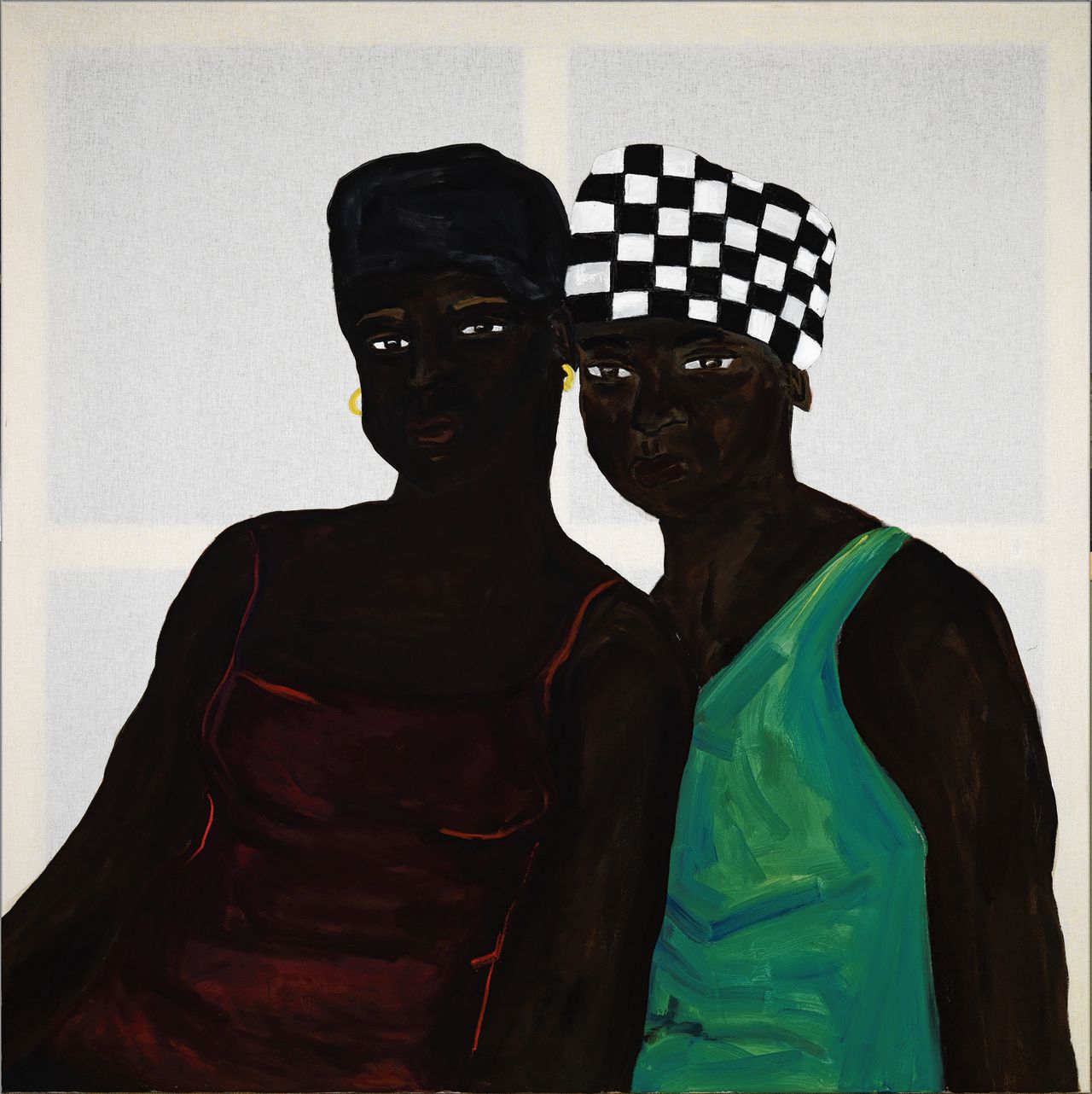 As with Kenneth Aidoo, Iriée Zamblé's work revolves around the representation of black people. "The essence of this triptych is to show a visual representation in which black people can just be, in peace and quiet," Zamblé says in the catalogue of the exhibition. On the enormous canvases, measuring one and a half meters by one and a half meters, the figures look straight at the viewer.