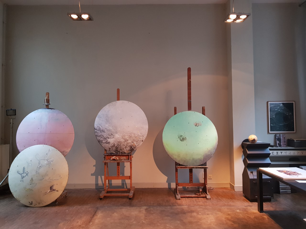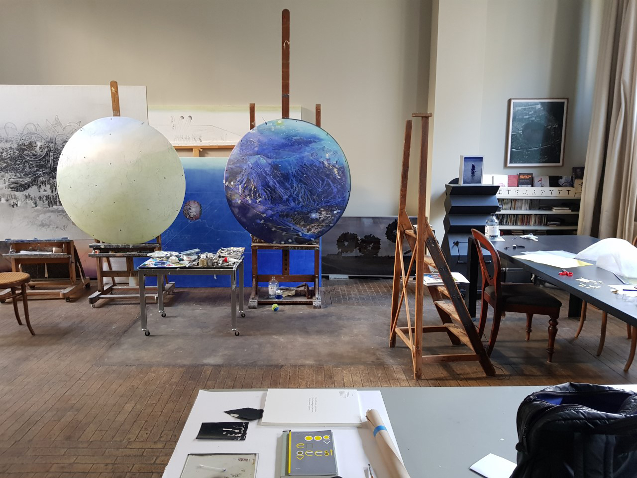 My studio is at home. And yes, I work in my studio every day. I have to go through the studio to go to certain parts of the house. The studio is located in the centre of the house, which means that there is always passage. I've gotten used to that. The children used to play somewhere in the corner of an eye.