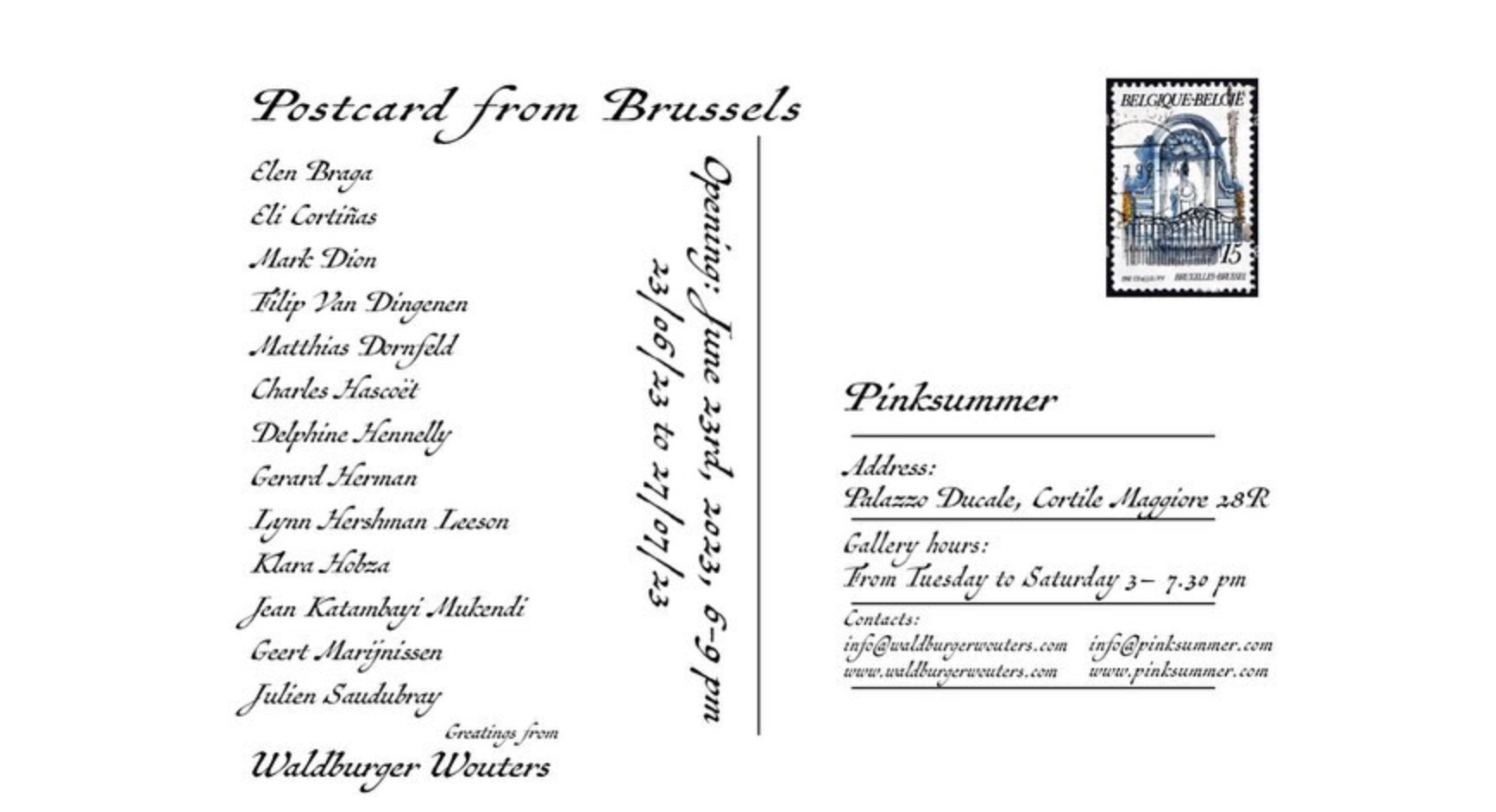 Voor de tentoonstellingen, Postcard from Genova en Postcard from Brussels, besloten de Brusselse galerij Waldburger Wouters en het Genuese Pinksummer Contemporary Art een andere -en meer moderne reistrend- toe te passen: huizenruil. Van 3 juni tot 8 juli zullen de collecties van respectieve galerijen in elkaars pand verblijven.