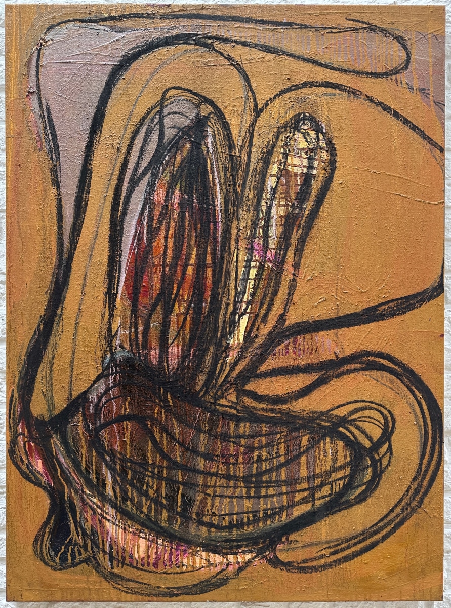At around the age of 18, I began drawing and painting in the studio of a local painter in La Spezia. It was there that my fascination with art really began to take off. Over the years, my work has undergone several evolutions. In my earlier years, during my undergraduate studies and after taking courses at the Academy of Carrara, I became fascinated with Expressionist painting. I tried to embrace this style and combine it with my study of painting techniques and anatomy. When I later moved to Brussels and earned a dual Master's degree in painting and textile art, my approach changed. Painting became something physical and tangible for me. I let go of the traditional framework and started experimenting with how painting could become spatial. I integrated textiles into my work. I used collages, sewed, painted and draped. I took the InSitu course at the academy in Antwerp, where my approach took on more of a performance form, allowing me to experiment with sculpture, video and installation art. After graduating, I felt somewhat nostalgic and returned to painting. I came to believe that painting was the most beautiful and expressive medium of all and offered me the greatest freedom.