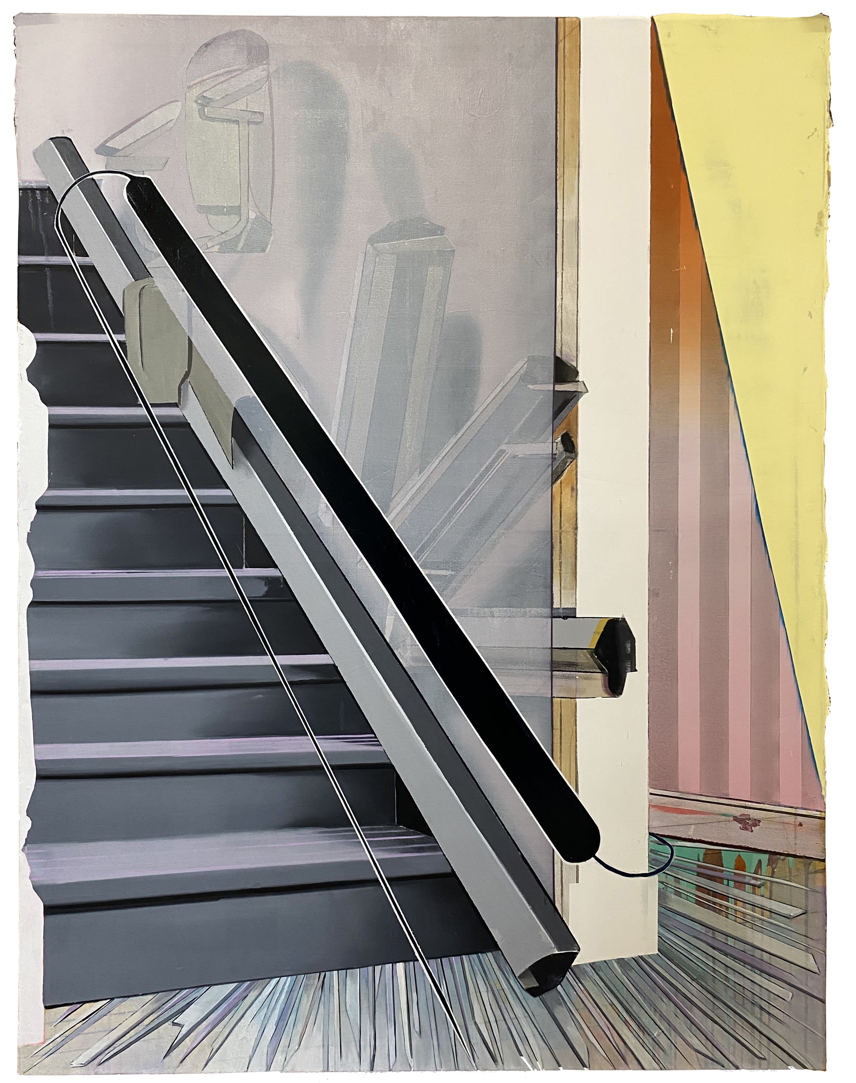 The German artist Christian Hellmich creates fragmented architectural spaces depicted through blocks of colour, grid patterns, and fading movements, giving the impression that space and time converge in a distorted perspective. These paintings often portray anonymous spaces devoid of human presence. While initially figurative in appearance, they tend towards abstraction. In his work, the artist employs not only muted gray tones but also vibrant colours such as yellow, purple, and pink, yet his compositions evoke a somewhat somber and dystopian atmosphere. Some of his exhibited works measure nearly 2 by 2 meters, while others are much smaller, only 20 by 40 centimeters. Hellmich draws inspiration from the resurgence of modernist representational painting by the Neue Leipziger Schule and draws from a personal archive of photographs, magazines, postcards, and images from the internet. His artistic practice, in a sense, serves as a critique of how our contemporary, heavily digitized society engages with imagery. In July of this year, KERBER released the book 'Tivoli' featuring Hellmich's work.