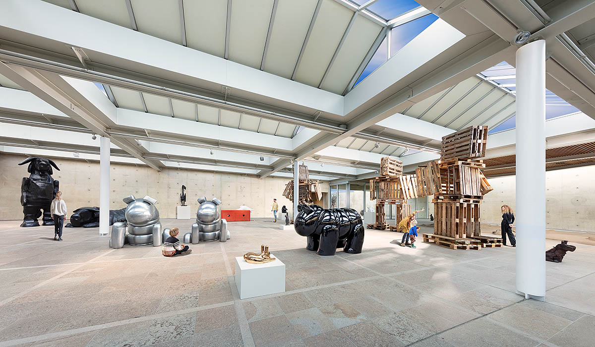 Claassen ultimately created three towering sculptures of pallets – only three, even though he toyed with the idea of making 20. But the museum also wanted to display some of his animal sculptures. "The pallet men are not only a strong environmental concept, but also a circular concept. After the exhibition, the pallets are returned to the factory." Claassen also created an immense Gulliver specifically for the exhibition, constructed from seven blue pontoon blocks and a yellow buoy. "It's a kind of land art in assembly style; with me, you get to keep your options open."