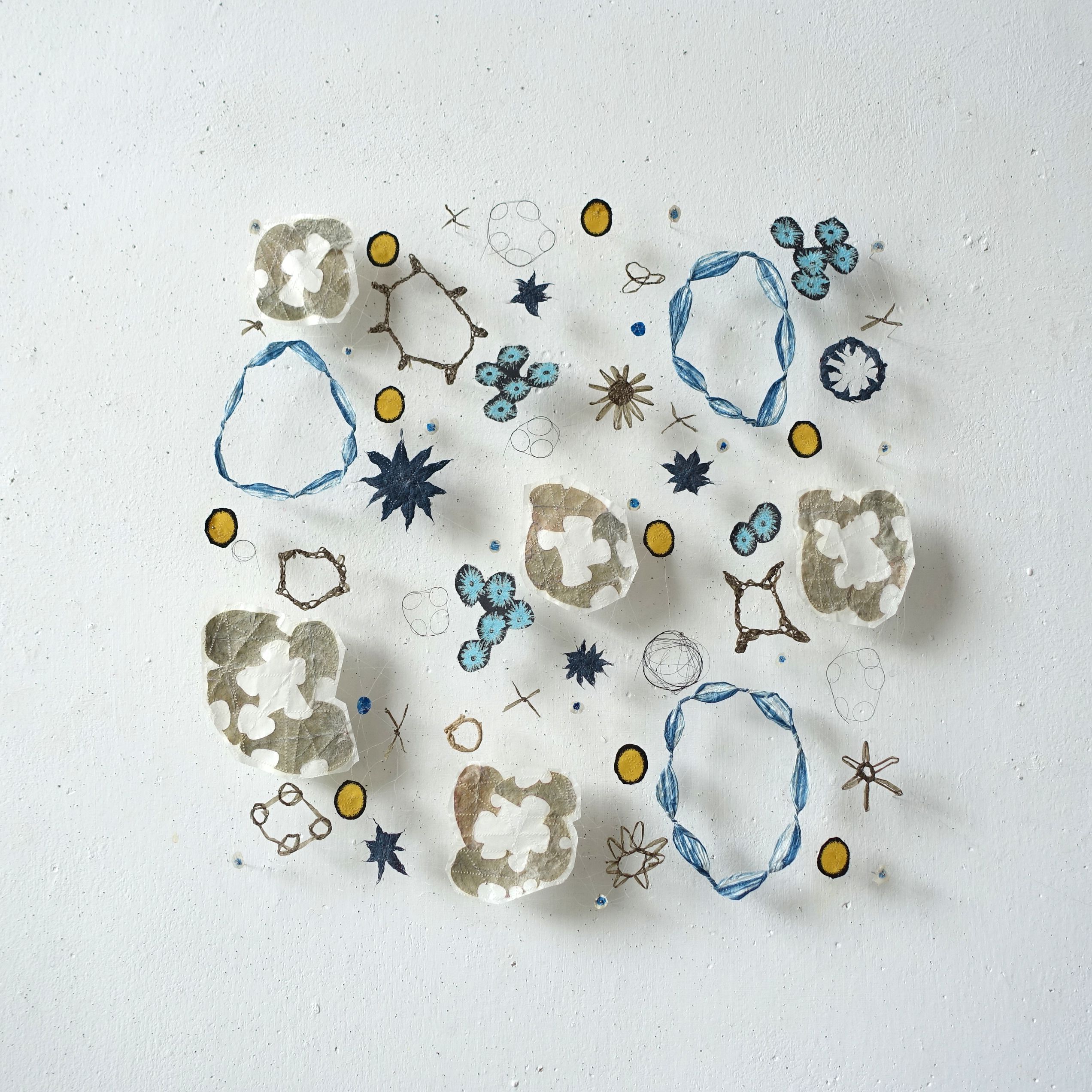 Esther Hoogendijk creates artworks that are, in a sense, alive. She uses recycled paper combined with seeds, roots, ink, and acrylic, resulting in works that transform over time. These changes in shape, colour and material are influenced by varying environmental conditions or human interaction, such as touch.