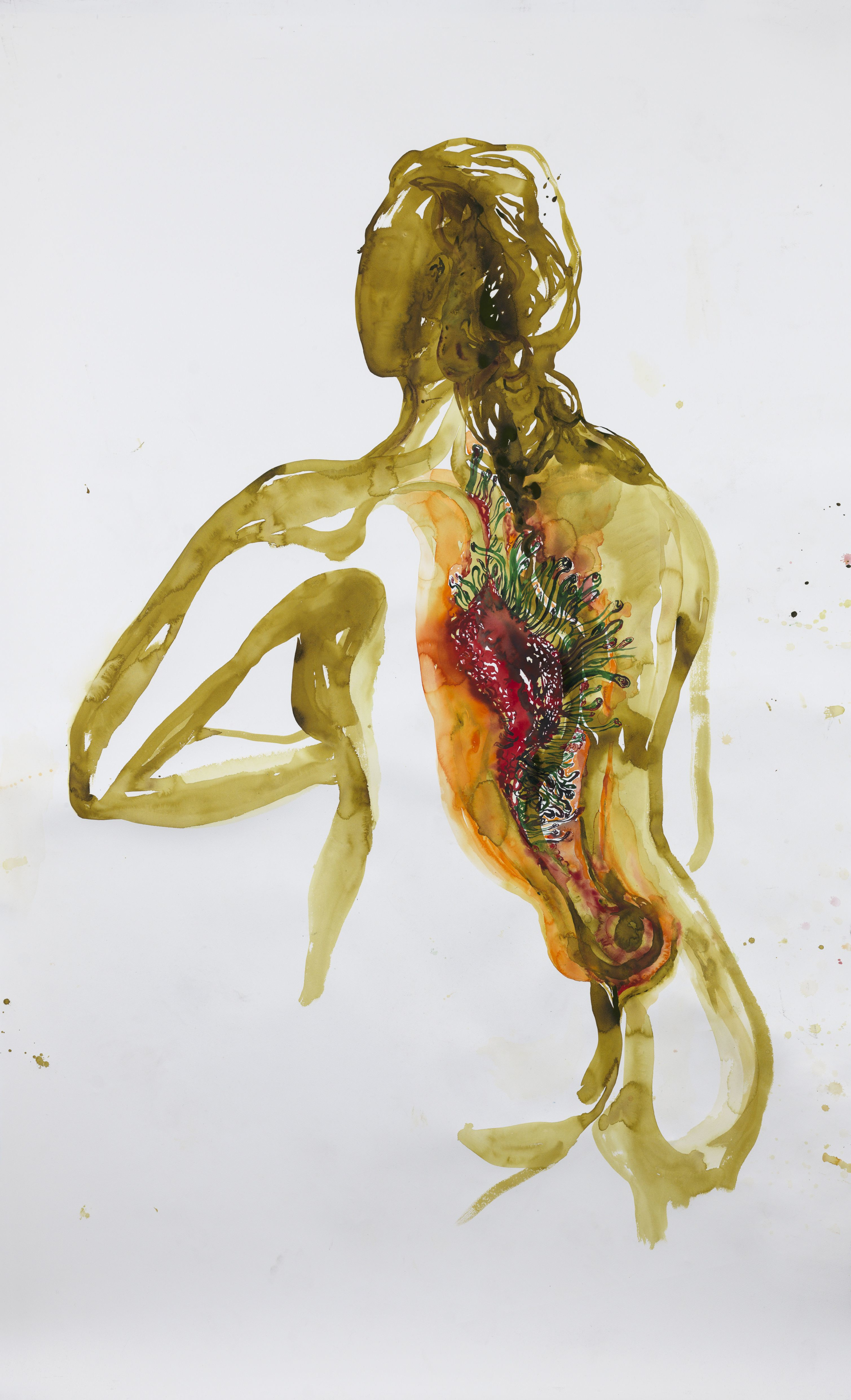 Aline Thomassen is known for her often large-scale watercolours that are characterized by a prominent presence of women. Historically, women were often the subject of the male gaze — seen through the eyes of men — but in Thomassen's works, the women often gaze directly back at the viewer. Her works are explicitly shaped from the female gaze.