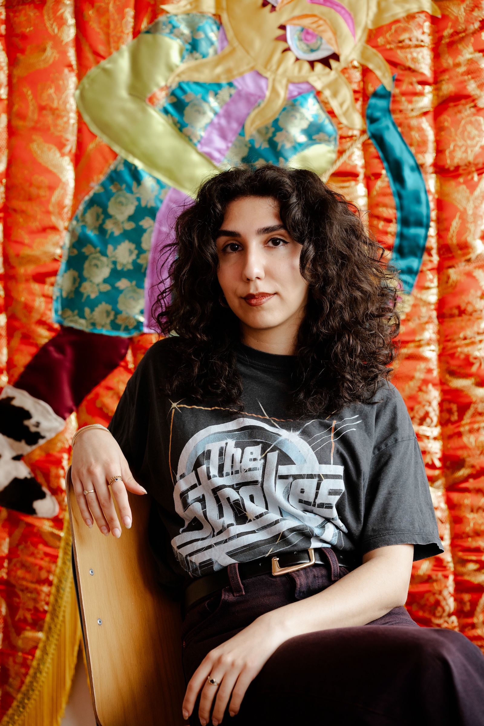 Manawi Rad (1995) creates textile art in the form of tapestries, giving them her own unique twist. You won’t find floral motifs or geometric patterns here, but tapestries stuffed with pillow filling, featuring bold colours, quirky patterns and textures. The stories she tells through her work are partly drawn from her personal life and partly inspired by Persian fables.