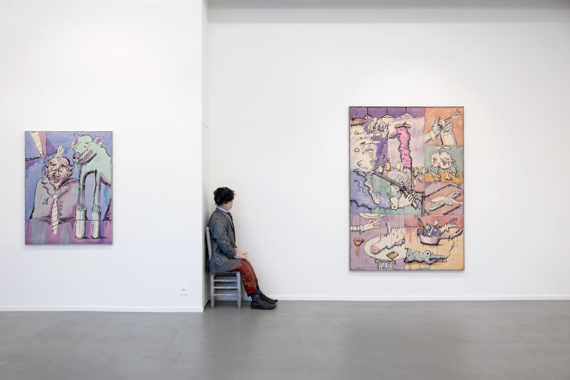 His current exhibition, titled Fantasy Supplement, borrows its name from Slovenian philosopher Slavoj Žižek. “He uses this concept to highlight the use of fantasy as a defence mechanism,” says Lutgens. “We use fantasy to avoid confronting things like trauma. We convince ourselves of things to justify our choices, believing that we must perform and that stress is normal.”