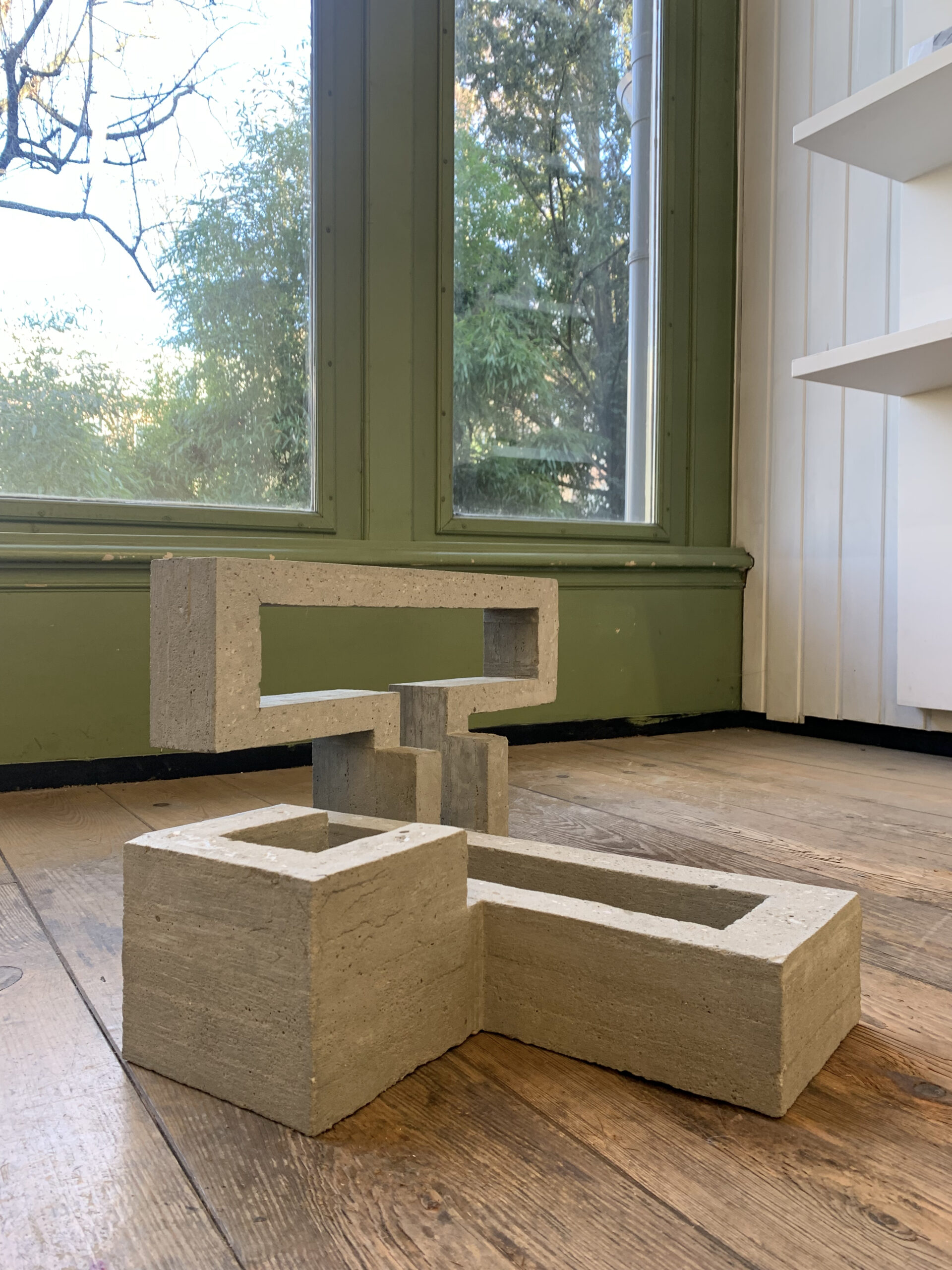Besselink’s "Concrete Crosses" are also on view in the exhibition. These concrete cross-shaped elements function as modular components for an ever-expanding three-dimensional grid. The work evokes an imaginary measuring tool designed to systematically chart the space it inhabits.