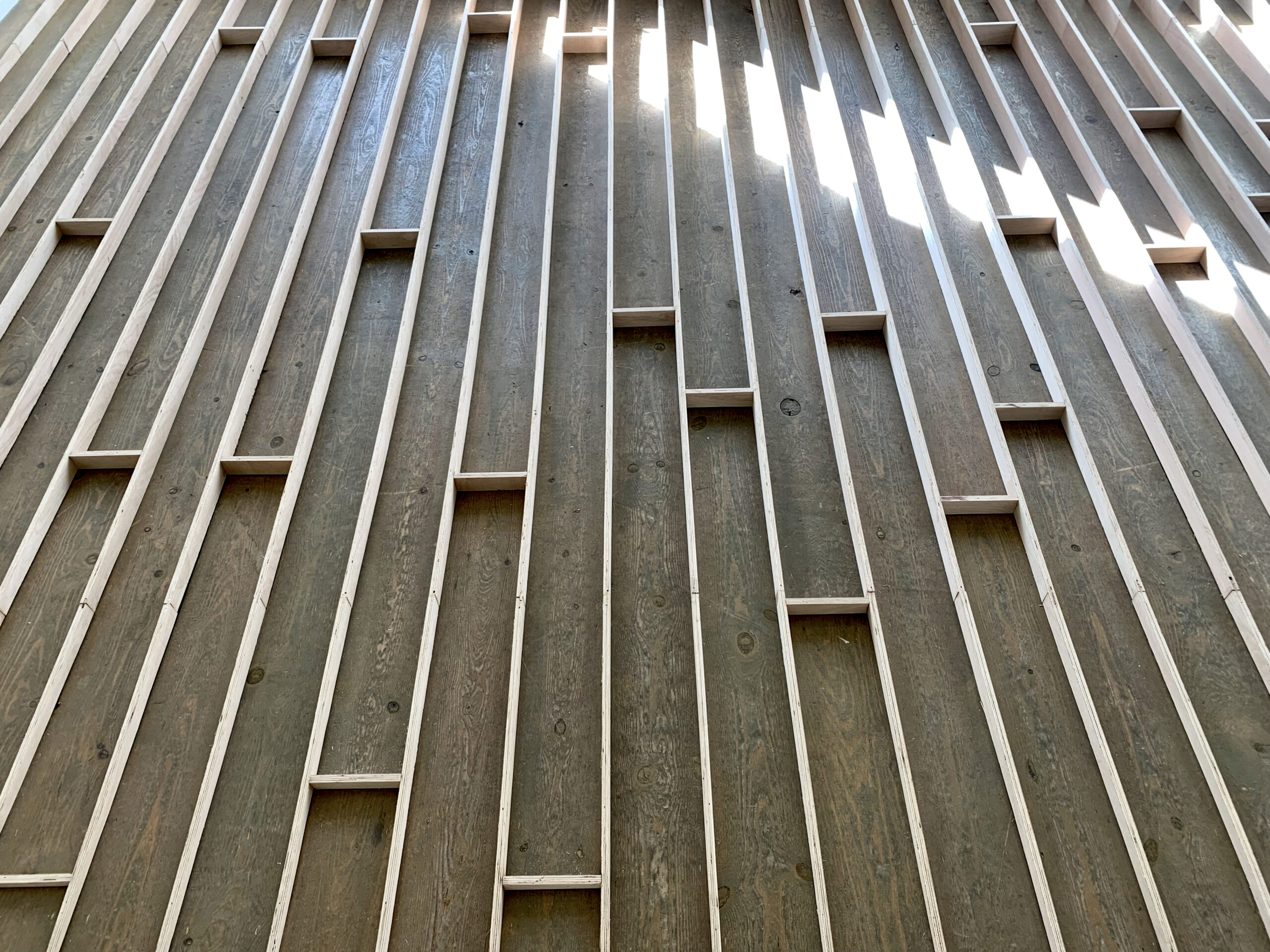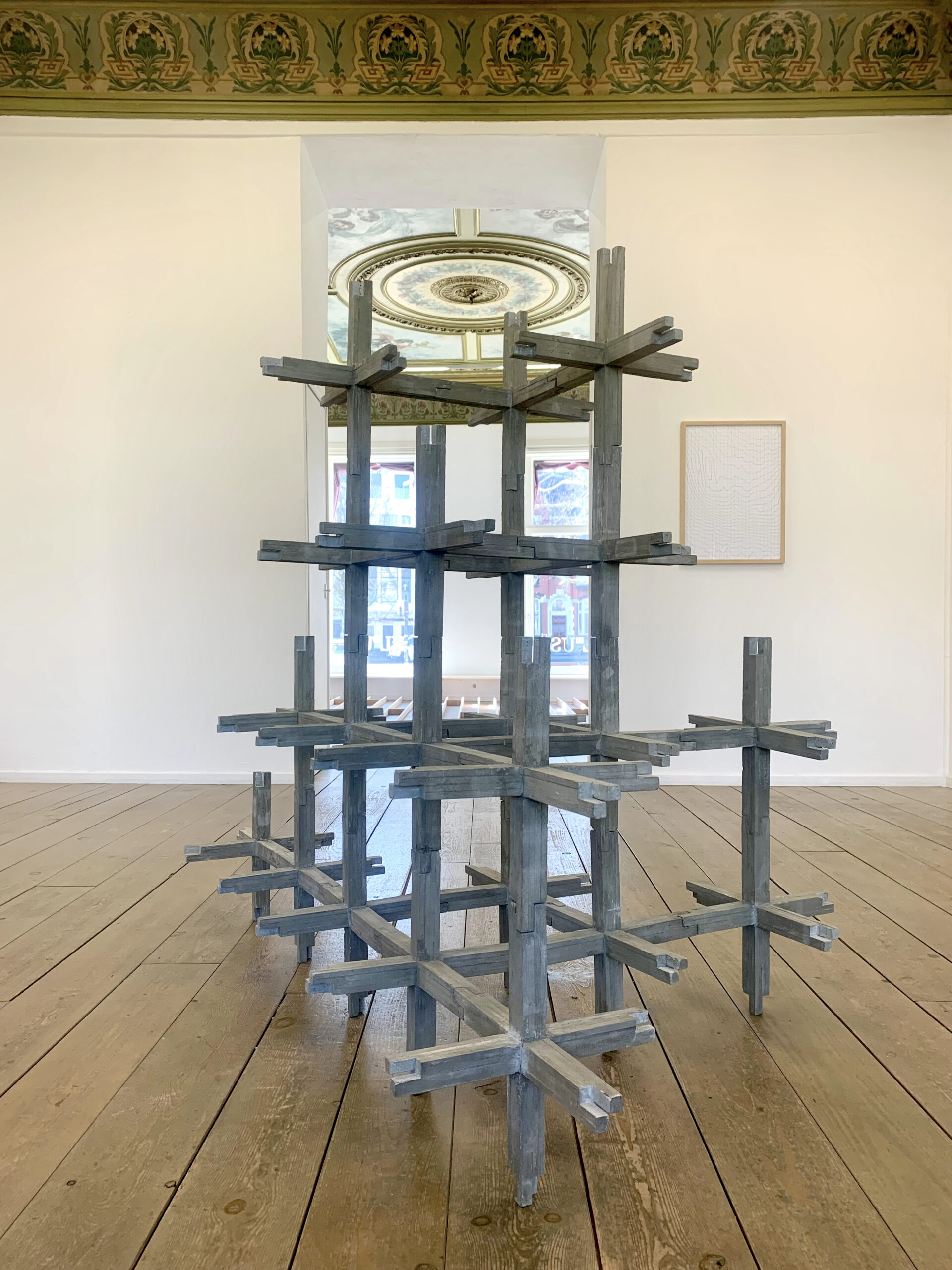 For this exhibition, Besselink worked with the existing pattern of the gallery floor. The grooves between the wooden boards were filled with wooden elements, rendering the gentle incline of the space into a sculpture. In doing so, the building itself becomes part of the work. What unites his oeuvre is the way it encourages visitors to look more slowly, more attentively. To reconsider their position in a room. To experience how perspective shifts with every step, and how even something as minor as an uneven floor can open the door to a new way of seeing. A drawing in black lines in the front room of the gallery presents a schematic rendering of the same floor, the same installation in another visual form.