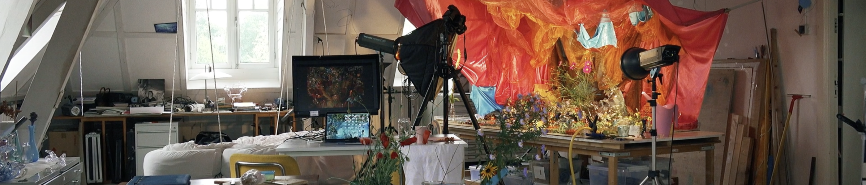 Je maakt foto’s van composities/stillevens veelal met bloemen. Welke eisen stelt je werk aan een atelierruimte? Wat heb je zonder meer nodig?