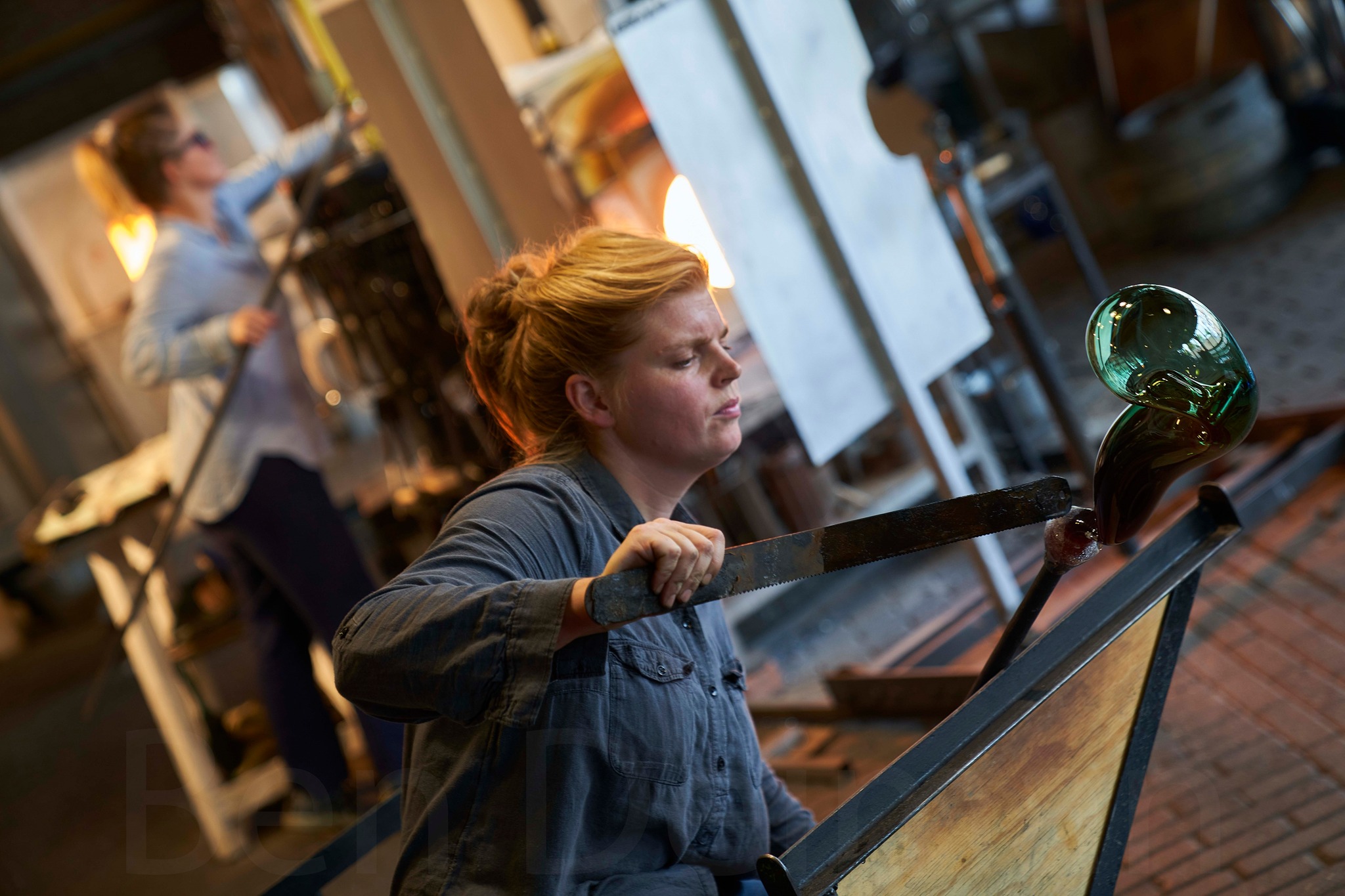 Her working process is physically demanding and unforgivingly precise. In a previous interview with GalleryViewer, Van Zandwijk explained, “It’s fascinating to turn sand, lime and soda into a liquid material you can shape at a red-hot temperature. Viscous and sticky when hot and hard and fragile when cool. But to give that bubble expressiveness, to have it tell a story, which is something quite different than mastering traditional glass blowing."
