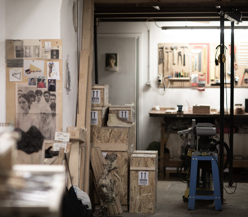 I live and work in Florence, and my studio is located in the historic center, inside a Renaissance building. It is a functional space that I have refined over the years, designed to allow me to work and complete the projects I intend to develop. I need a flexible environment that enables me to work on multiple pieces simultaneously, to experiment with different materials, and to carry out the entire creative process—from conception, realization, and finally shipping. Wood sculpture, which is at the core of my artistic practice, requires a great deal of equipment, space, and suitable structures. Over the years, I have tailored the studio to my needs so that I can work dynamically.