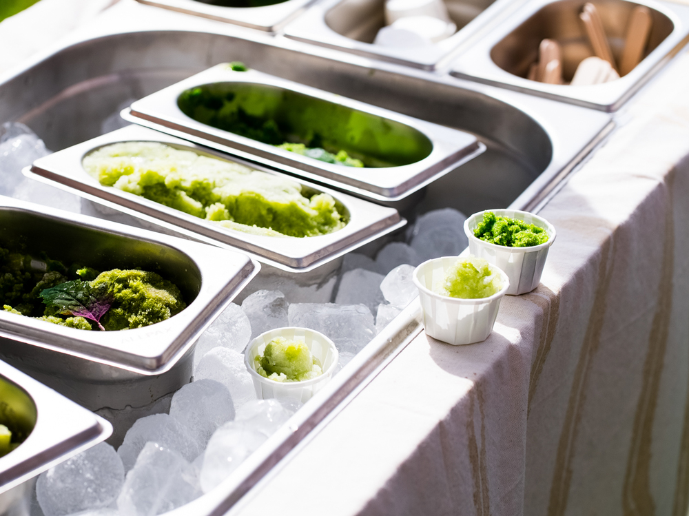 I am showing my new work ‘The Taste of Photosynthesis - Wild Ice Cream Shop’ within the exhibition Expanded Fields ERDE/N at Froh Ussicht in Switzerland. I created different sorbet from plants like clover, millet, camelina, and plantain that grow on the farm where the exhibition takes place. In this work I explore how I can introduce the particular flavours of these plants to visitors. To me the sorbet is a way of abstraction that at the same time creates relation - a connection between plants and humans. I had such interesting conversations and encountered so much curiosity by the visitors when serving the sorbet. I also used plant juice for a series of works on fabric which are somewhere between painting and anthotypes. A photographic technique in which plant juice is used as photosensitive image carriers.