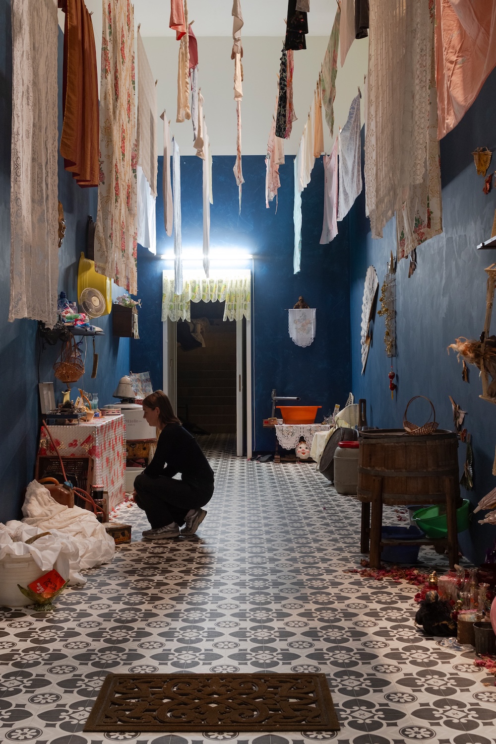 In "Lusgarda", the work Osepa created for the Prix de Rome exhibition, the artist addresses the ritual of Ocho Dia, the eight-day mourning period following a funeral on Curaçao. This ritual forms the starting point for an installation that not only reflects individual loss but also points to a collective loss: the gradual disappearance of knowledge, rituals and customs passed down from generation to generation. Grief is therefore not presented as a closed chapter but as a process that continues to repeat and transform.