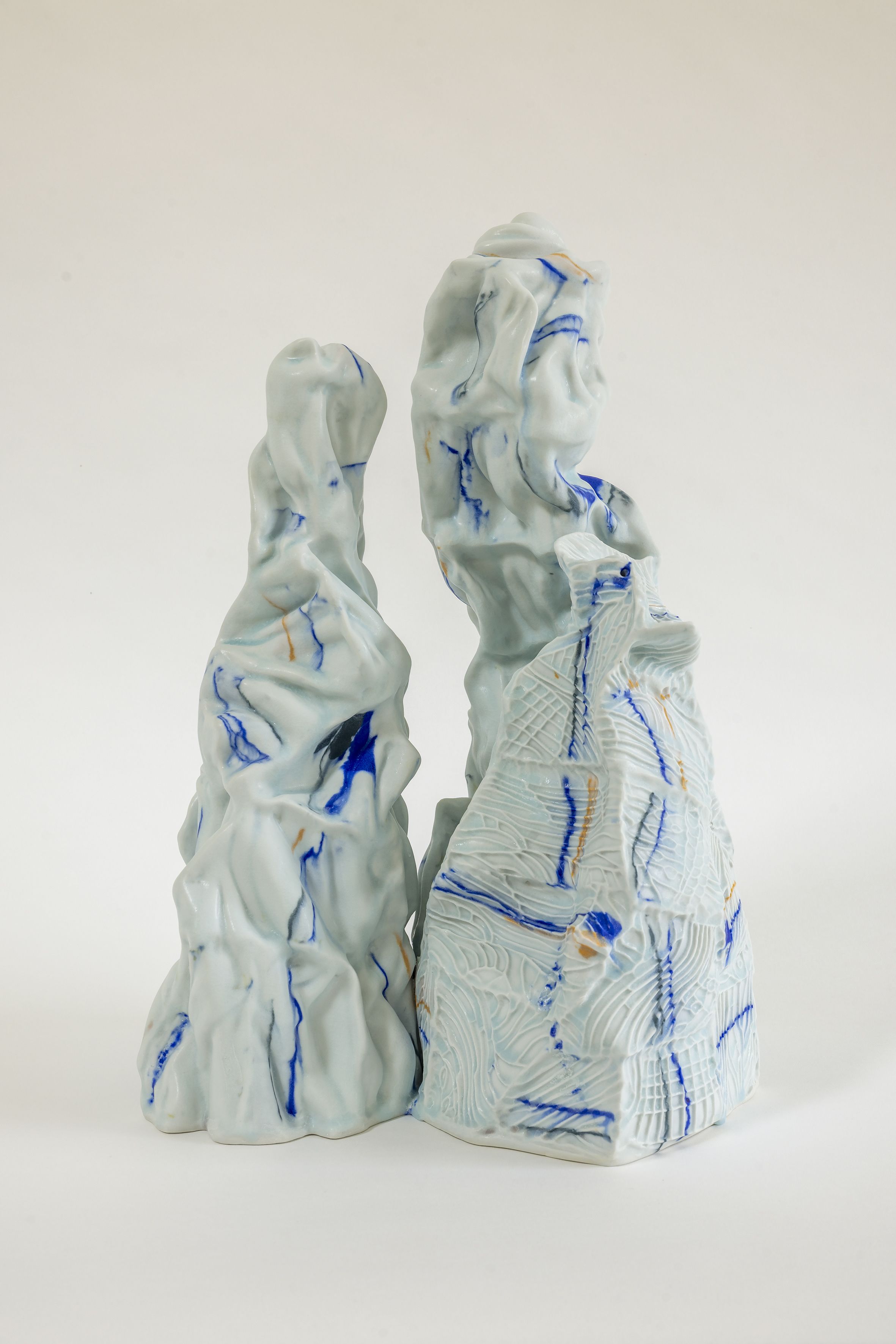 Babs Haenen creates porcelain sculptures in which her background in dance resonates through flowing, organic forms. She works with coloured porcelain slabs, building layered sculptural compositions. Her recent work takes inspiration from Chinese landscapes and the tradition of scholar’s rocks, distinctive natural stones that have been collected for centuries by Chinese scholars, artists and Taoist monks.