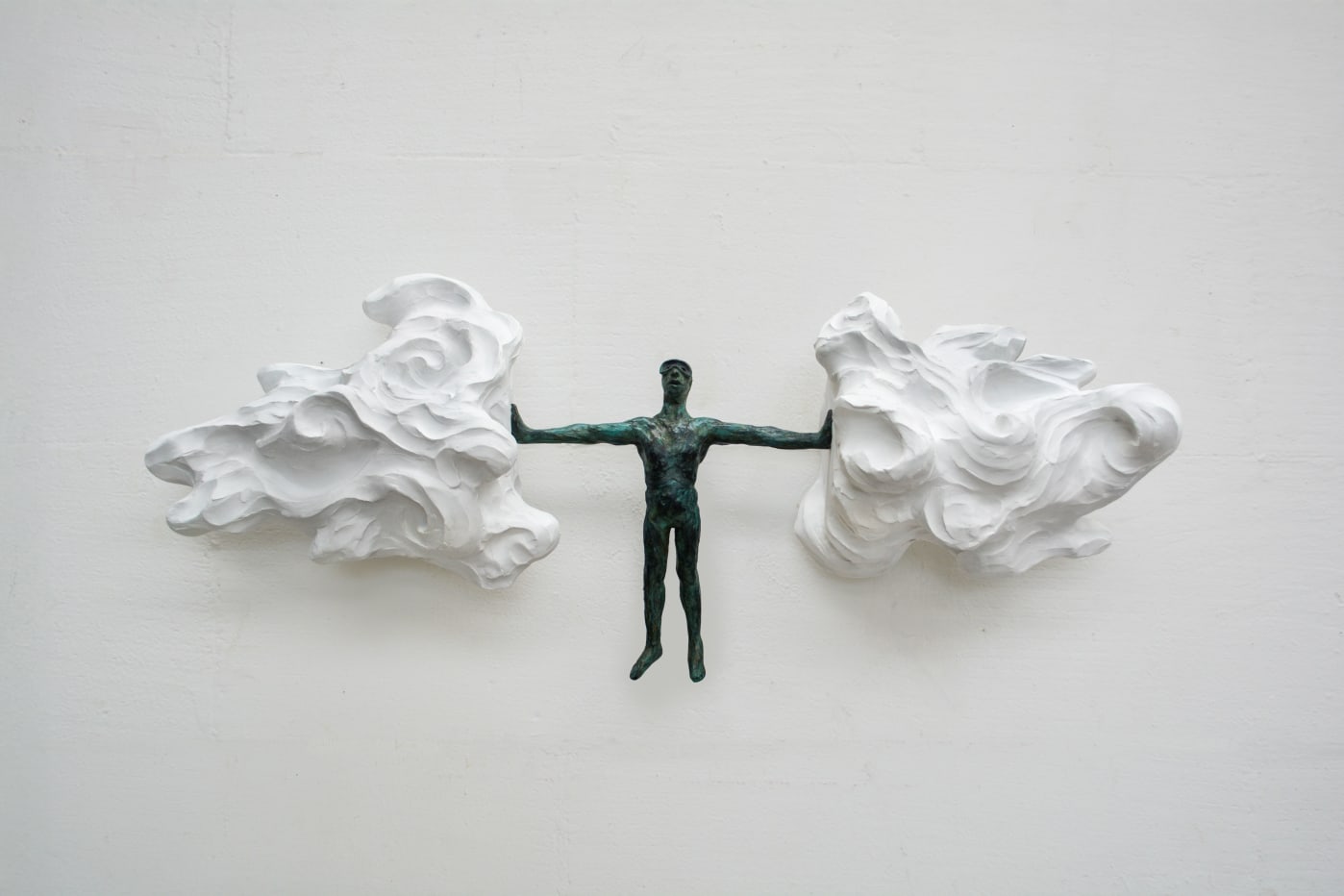 The selection of work was not made afterward. It grew alongside the making. Certain forms return repeatedly: clouds, figures, tensions between weight and levitation.