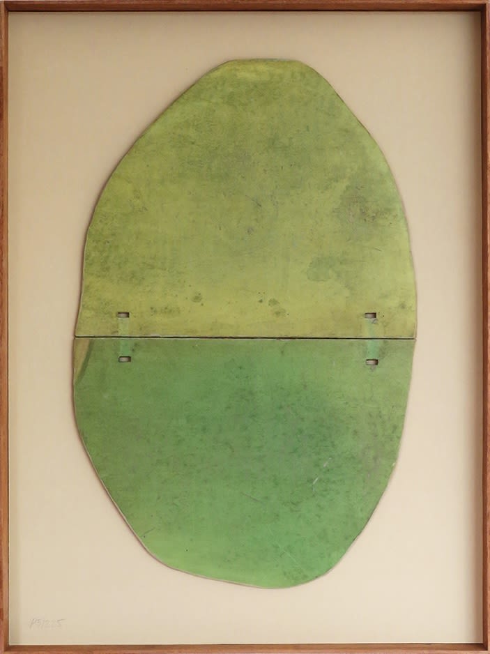 Oval forms hang on the studio wall. No perfect circles, no mathematical clarity, a shape that feels organic, almost biological.
