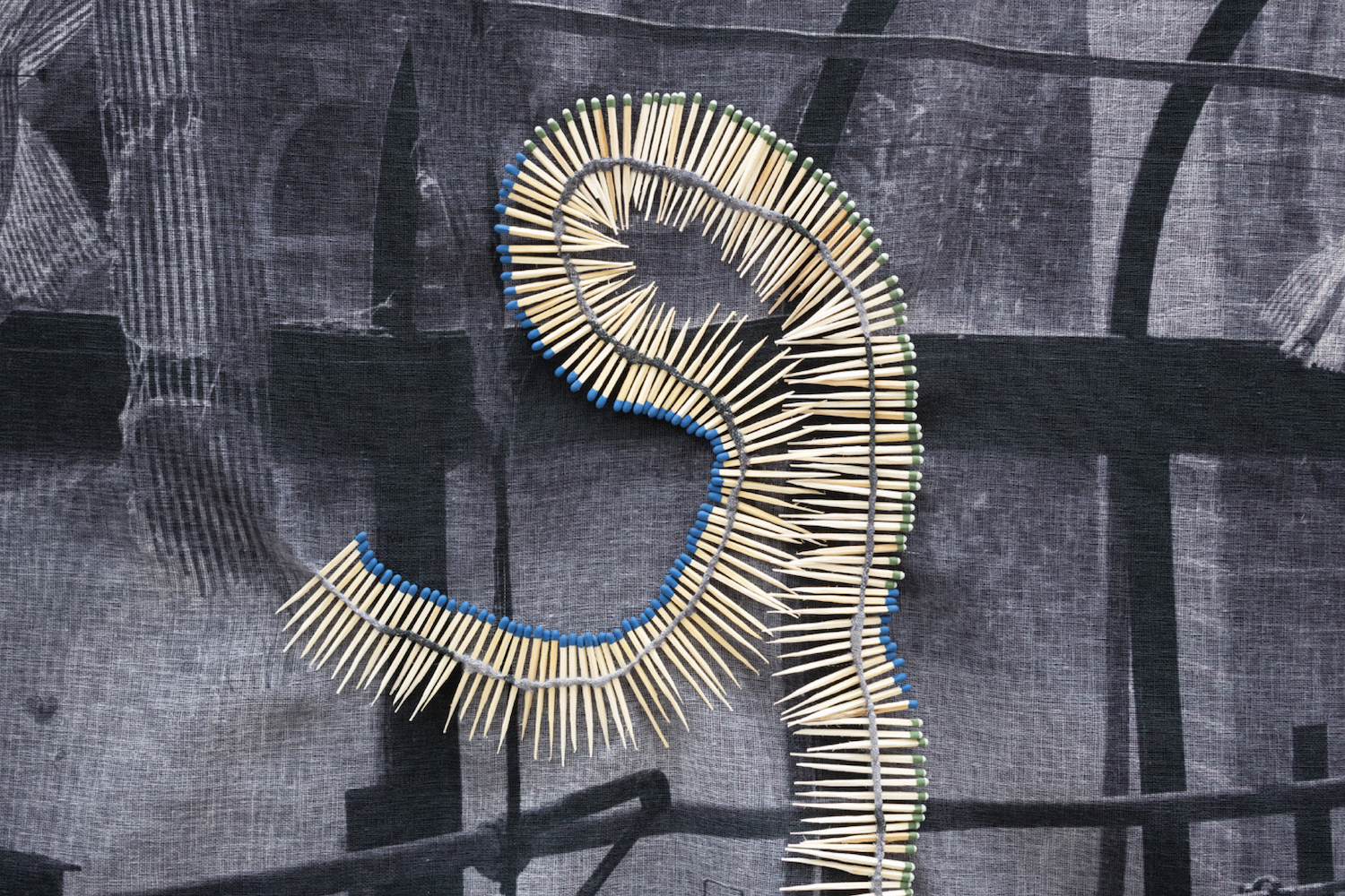 In 'Sleep in Witness', Gqunta explores the concept of sleep and dreams on the basis of her Xhosa heritage. Dreams function as a connection with her ancestors and are a place where knowledge can be gained. Her multi-sensory and layered work is informed by this dream world and explores themes such as landscape, violence, resistance, collective healing, identity, female power, the domestic space, traditions and rituals, history and collective memory, privilege, globalisation and capitalism. Recurring materials in her work are materials that could also serve as a weapon in a different context or form, such as glass, concrete, barbed wire and more specifically: the more aggressive razor wire. They are symbolic and emotionally charged materials that refer to the townships, which were reserved for the black inhabitants of South Africa during apartheid. Gqunta also regularly uses white sheets in her works, which refer to a recognisable ritual: the processing of the laundry and the folding of the sheets, traditionally a moment when knowledge was shared between the female members of her family, but at the same time a potential moment for secret talks and resistance during apartheid.
