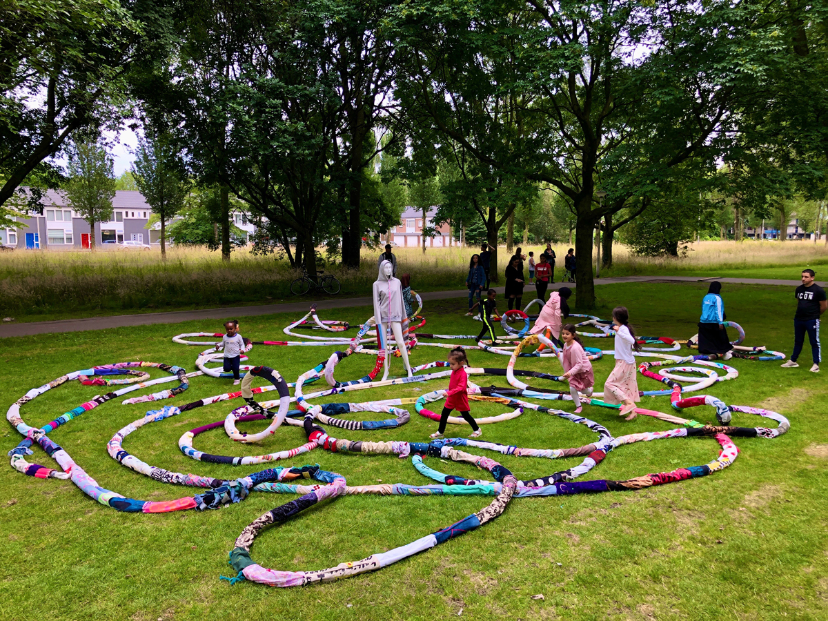 In a temporary studio in a disadvantaged neighbourhood in Tilburg, people were invited to create a piece of a sleeve with almost complete freedom. More than 400 people ages 7 to 70 expressed themselves through this project. The result was a hoodie with sleeves 211 metres long, presented at a neighbourhood event. It was moving to see how this creative process empowered people and connected them with others they may not normally meet.