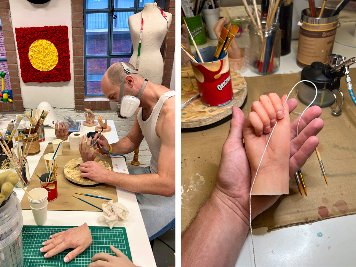 The hands in your works look realistic. Do you make these yourself and whose hands are they?