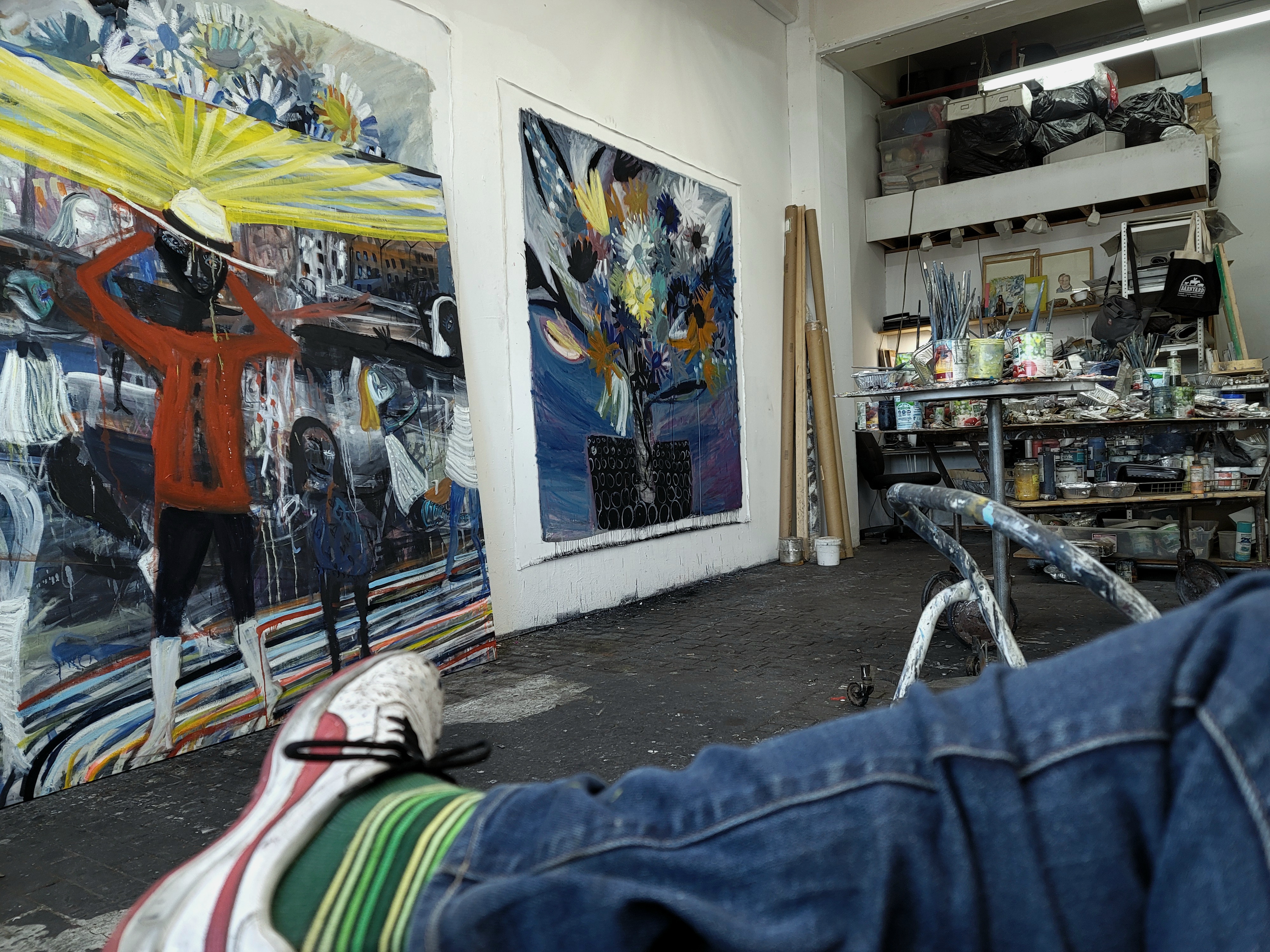 Ik heb verschillende opties, maar meestal ga ik met het openbaar vervoer: de afstanden hier in New York zijn behoorlijk groot. Ik woon aan een park, en als het een mooie ochtend is, besluit ik soms te voet te gaan. Dit is dan wel een flinke wandeling. Ik heb het geluk ook over een atelier in Rio de Janeiro te beschikken en probeer de tijd tussen de twee ateliers te verdelen durende het jaar. In Rio heb ik mijn atelier aan huis; ik ben heel blij met die plek, maar het komt er vaak wel op neer dat ik soms dagen opeen opgesloten zit. Soms werkt dat mijn productie niet ten goede. Ik geloof dat het goed is om de deur achter je dicht te trekken op een gegeven moment, naar huis te gaan, om het vervolgens allemaal weer te herhalen de volgende dag.