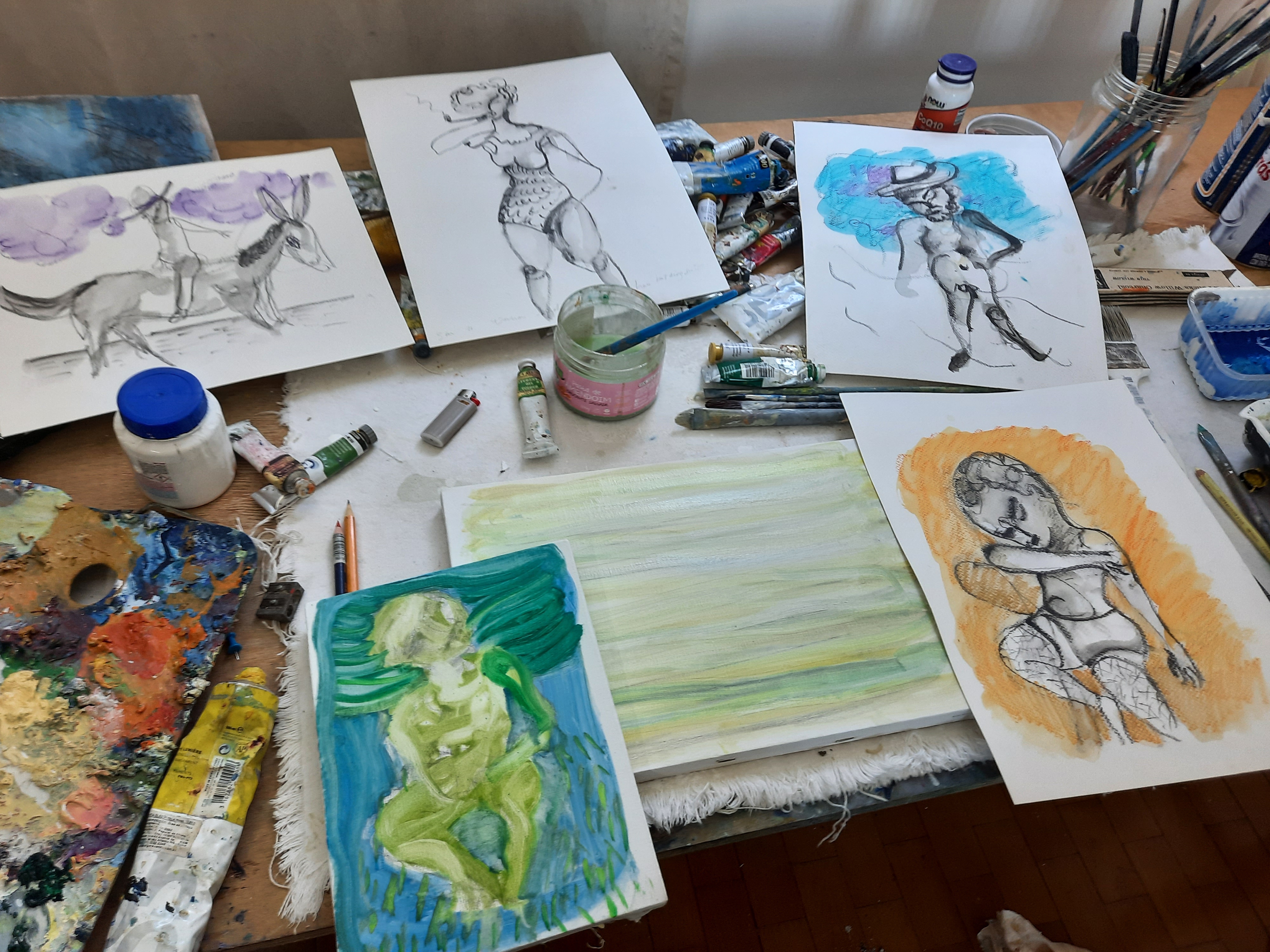 Wat betreft curatoren en verzamelaars; die zijn absoluut welkom, maar liefst vlak voor een tentoonstelling, wanneer een groot gedeelte van het werk zich in de laatste fase bevindt, of reeds af is.