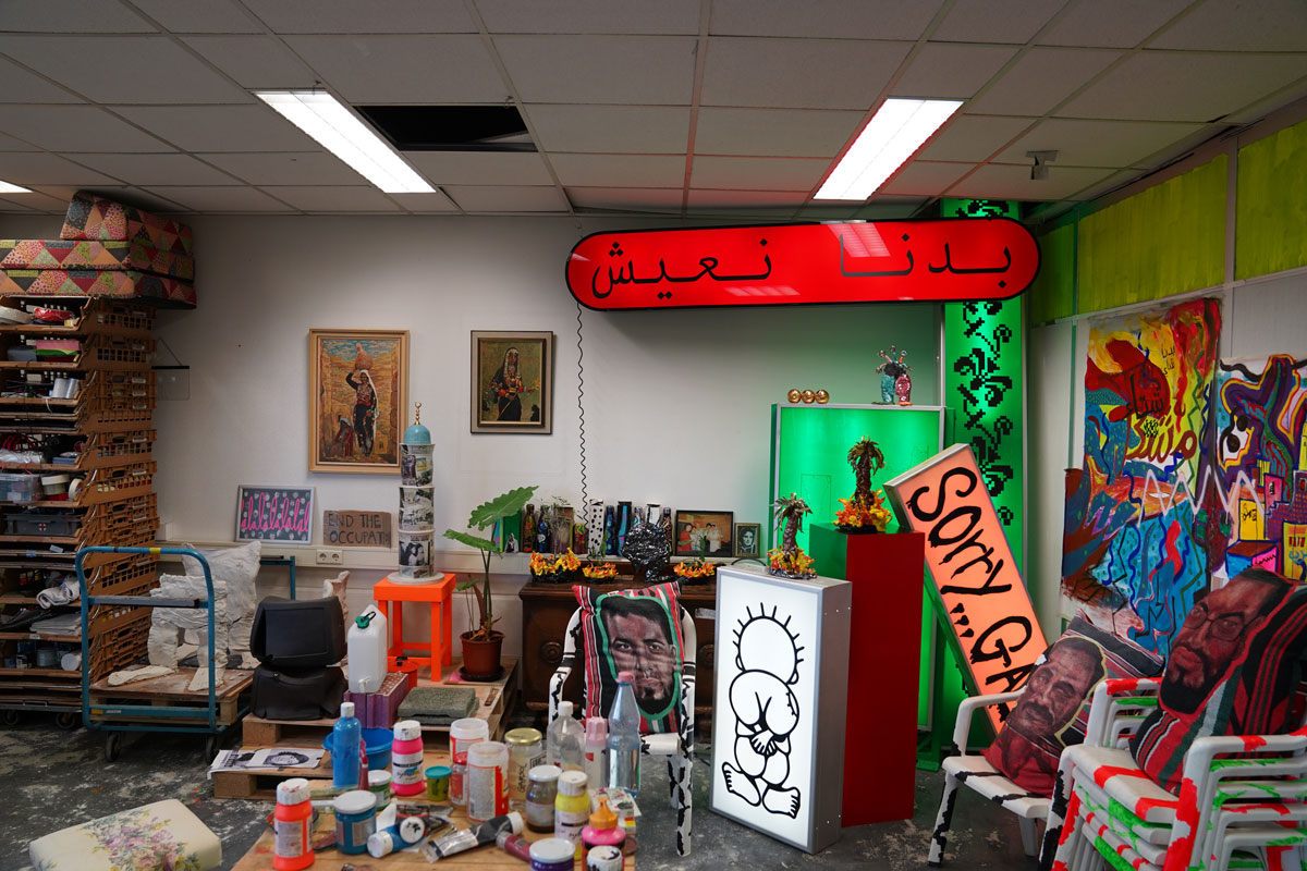 Inmiddels zit ik al zo’n 2,5 jaar op dezelfde locatie. Ik huur hier verschillende ruimtes; atelier, opslag, en ik heb onlangs met collega WONNE een eigen expositieruimte opgericht, die wij tussen tentoonstellingen door ook als werkruimte gebruiken. Deze ruimte heet Yusef’s Schwärmer. Al deze ruimtes zitten vlak naast elkaar in een mooi groen park met veel buitenruimte. Hier kom ik echt tot rust, en kan ik mij focussen op mijn werk.