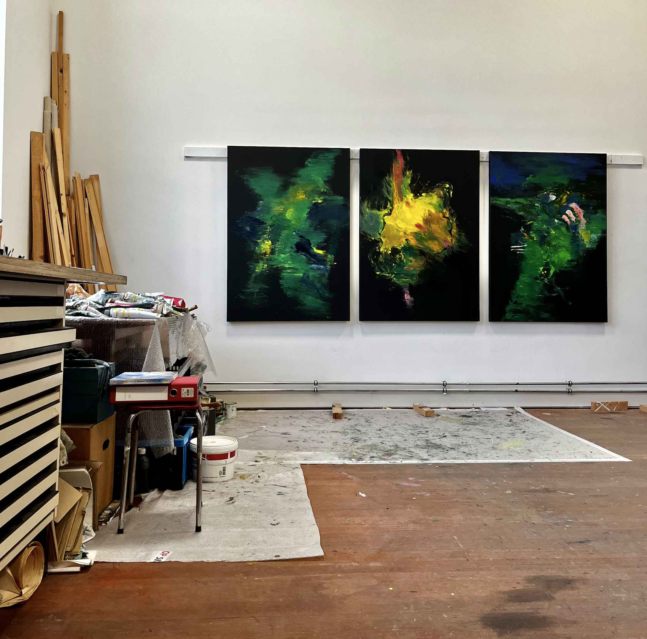 Licht is heel belangrijk. Mijn atelier ligt op het Oosten in stadsdeel Westerpark. In de ochtend is het zonnig, maar daar kan ik helemaal niks mee. Juist als de zon weg is, is het licht in mijn atelier op zijn best. Rond twaalf uur in de middag is de zon meestal weg en wordt het gedurende de middag steeds beter. Zomers kan ik dan tot tien uur in de avond door als ik wil en in de winter tot zes uur ’s avonds. Sinds de renovatie van mijn atelier is het kunstlicht heel erg verbeterd, waardoor ik ook ’s avonds kan werken.