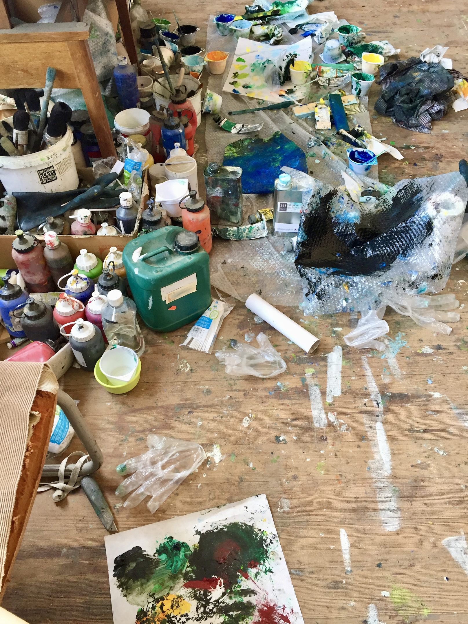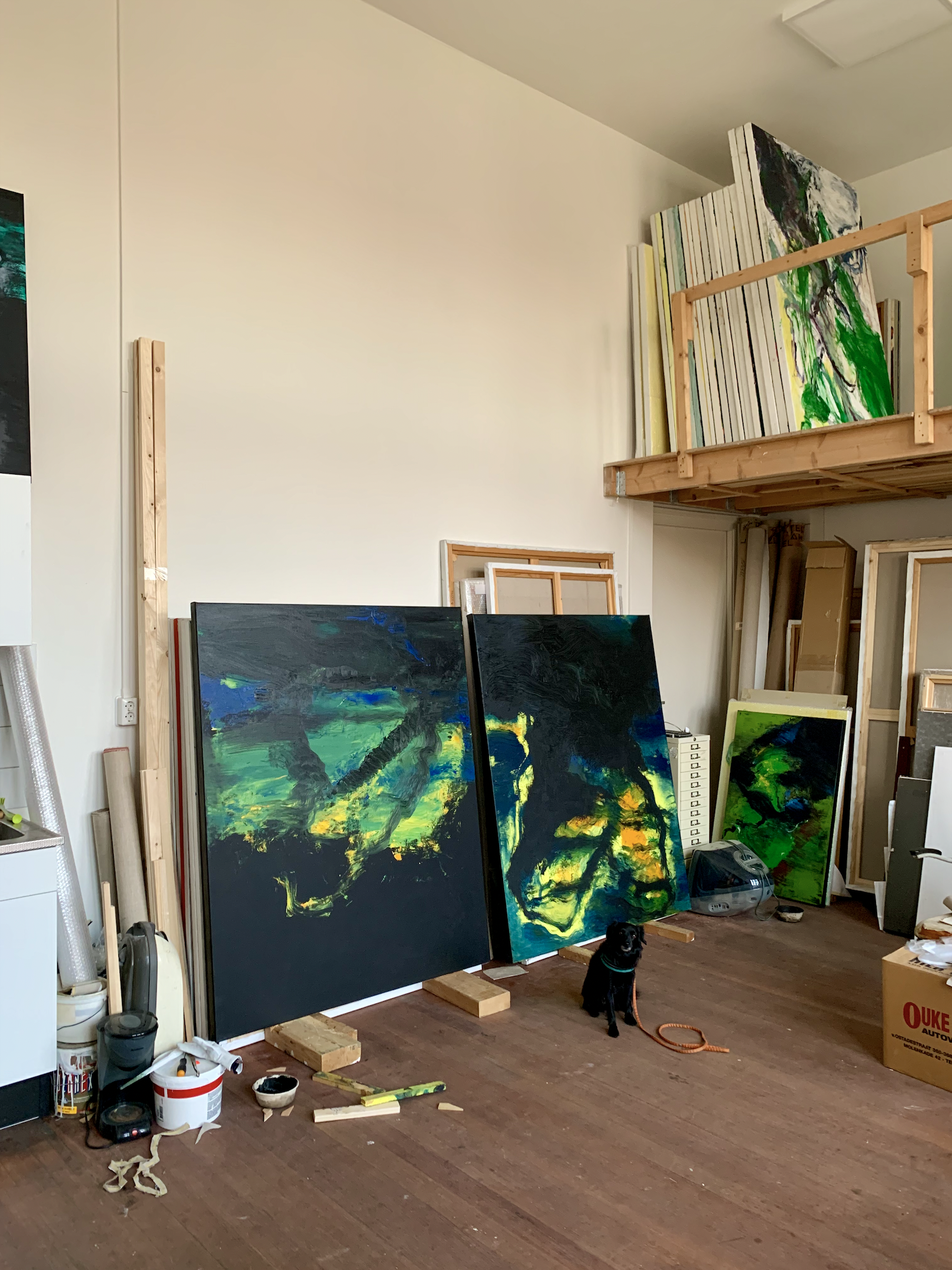 Veel indirect licht, hoge muren zodat ik grote schilderijen kan maken. Veel rust, geen geluid van buiten. En heel veel ruimte en opslag!