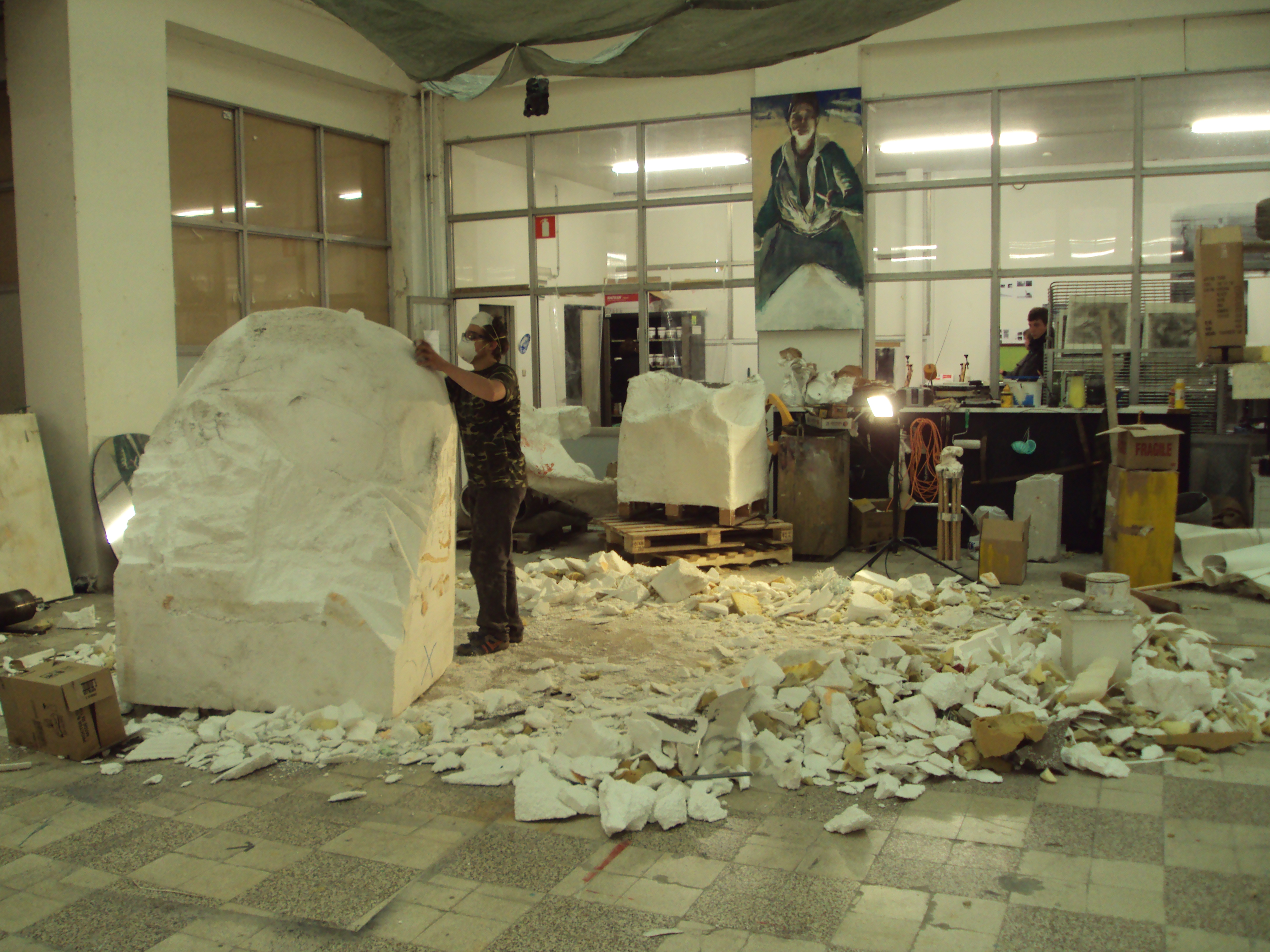 Via foto’s heb ik al wel verschillende prachtige ateliers gezien; het heeft altijd iets bijzonder en romantisch om de kunstenaar in zijn atelier te zien. Zo heb ik al vaak jaloers zitten kijken naar het werk in het atelier van de Oostenrijkse beeldhouwer Bruno Gironcoli. Blijkbaar krijgen docenten die in Wenen beeldhouw-les geven een gigantisch atelier van de Academie ter beschikking, soms even groot als de plaats van alle studenten samen.