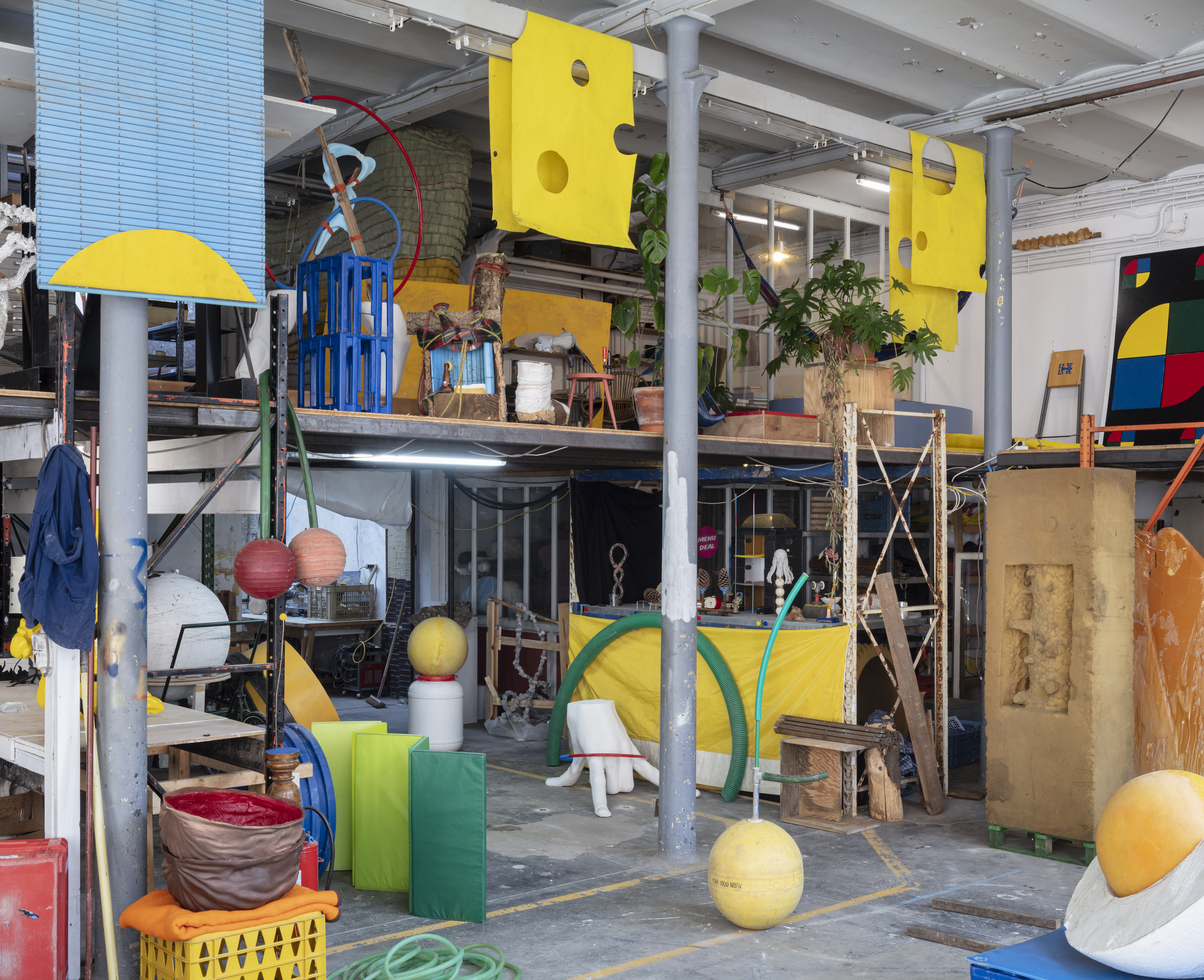 In mijn werk speel ik graag met dit idee van het atelier als fictieve, romantische plek. Uiteindelijk is het gewoon een werkplaats, maar omdat je er zoveel tijd doorbrengt – en als kunstenaar constant bezig bent je omgeving te creëren en vorm te geven – wordt het uiteindelijk een soort spirituele speelplaats of droomfabriek.