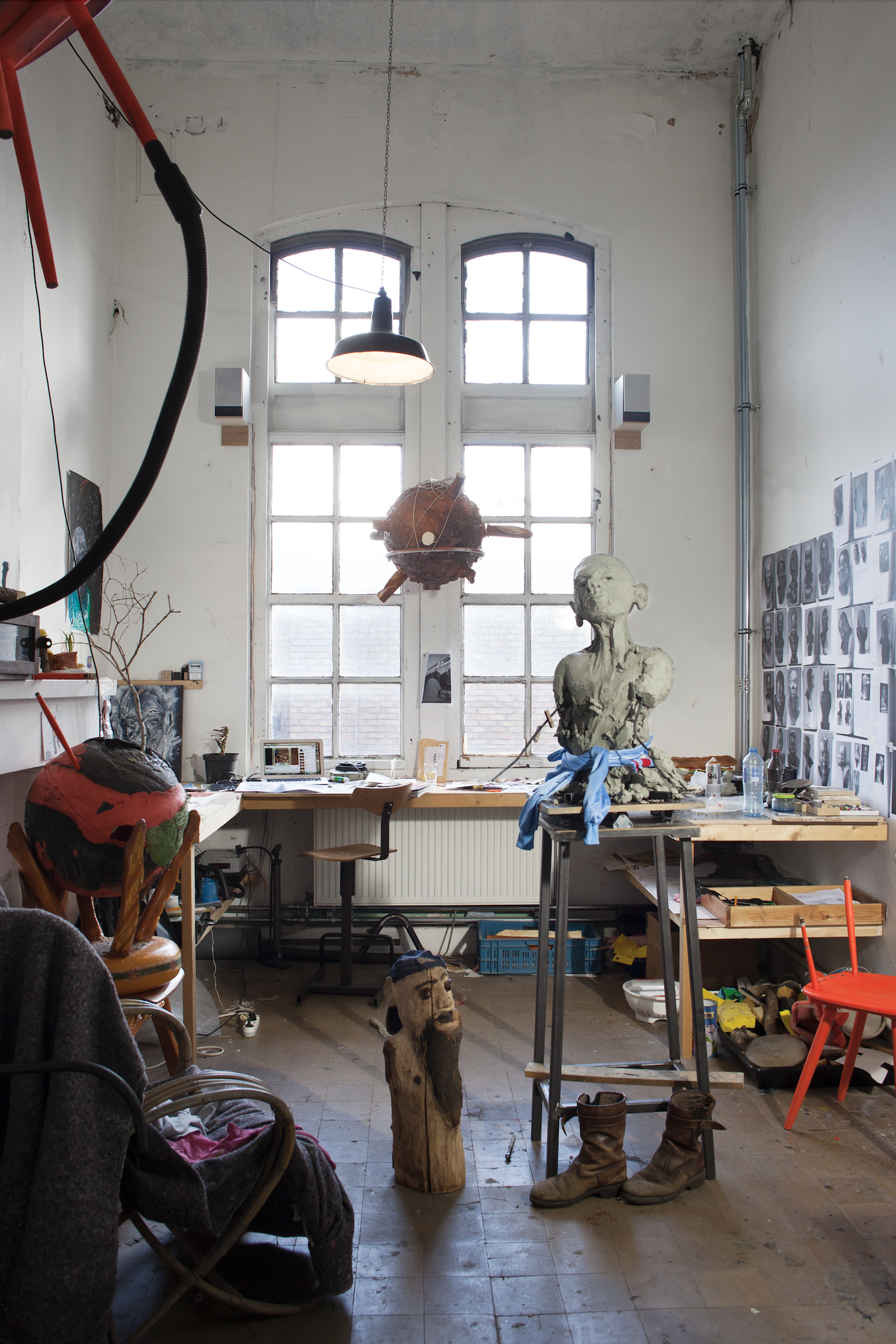 Ik deel mijn atelier met Liesbeth Henderickx en Sven Boel; tien jaar geleden werkten we er als collectief. Ondertussen is het werk individueler gegroeid, maar delen we nog wel de werkplaats en de collectieve sfeer. Ik werk geregeld met studenten of recent afgestudeerde kunstenaars. Het is leerrijk voor mij om met verschillende generaties verbonden te zijn.