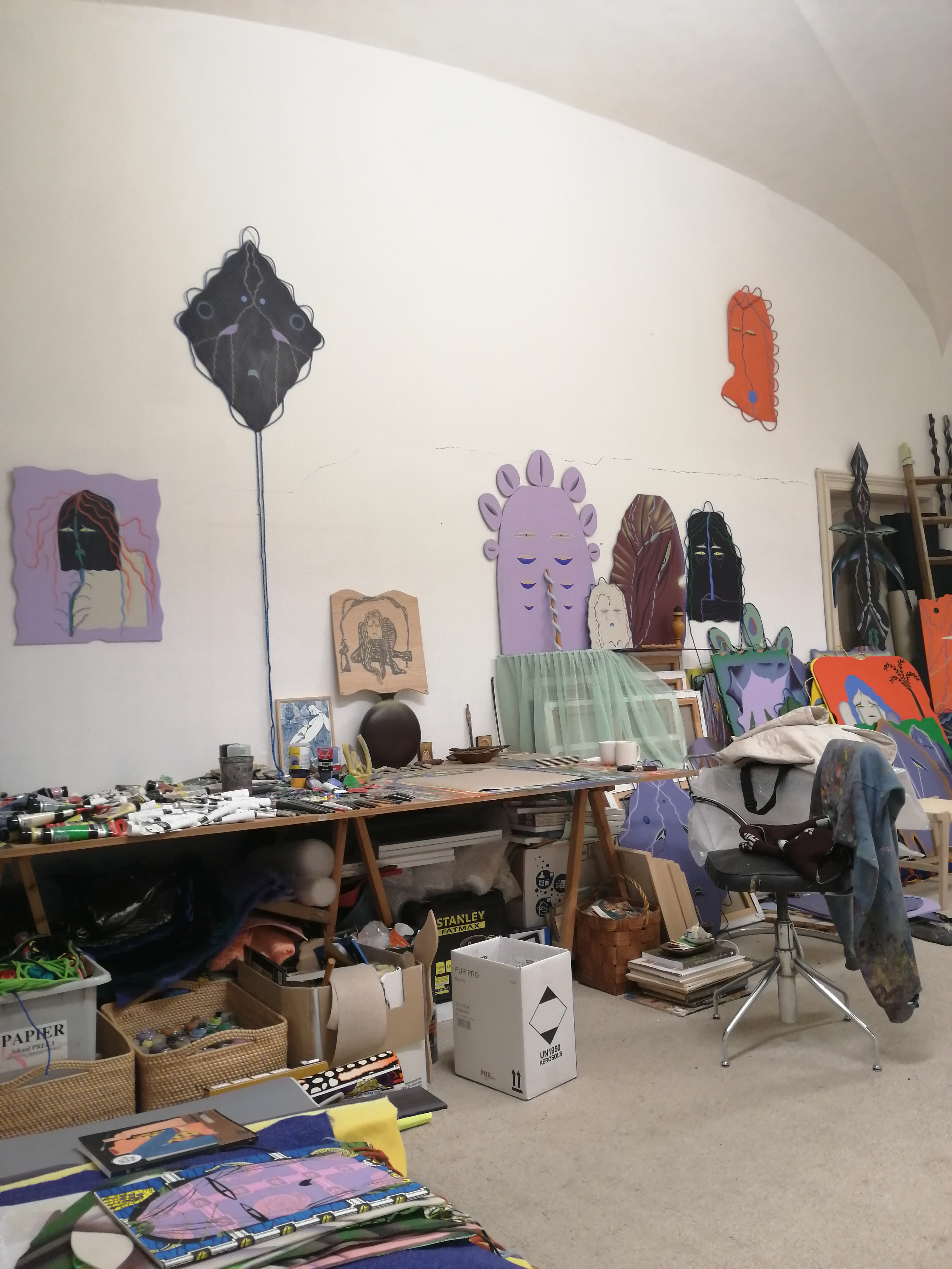 In my studio I periodically receive friends, artists, curators and collectors. At regular intervals – for instance, when I've finished working on a body of work – I think it's time for the works to be seen. Then I like to invite people to my studio. I then make an organic arrangement, I create a kind of atmosphere. It's not a museum, so I'm not installing an exhibit. People can really be immersed in another world.