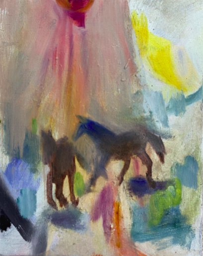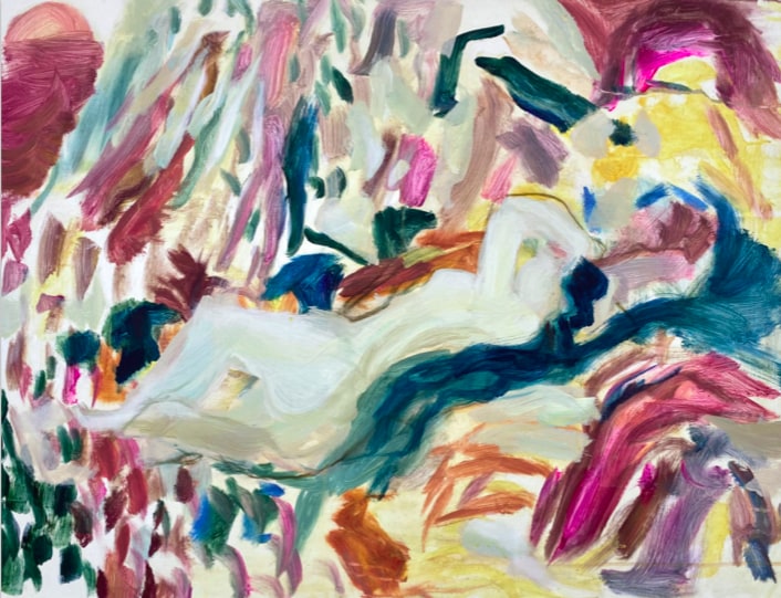 I just continue painting. The topics and ideas I use are starting points, I want to keep them as open as possible so that they don't limit me in any more way as needed, but give me the best possibility to be able to reach the best result that can happen for the painting. I need to feel the right energy during the painting process, it's a journey where I focus on finding great compositions and colour or texture combinations. I try to stay as free as possible, but the centre is the poetry of the human experiencing the world right now in one point on the line of time, in multiple ways.