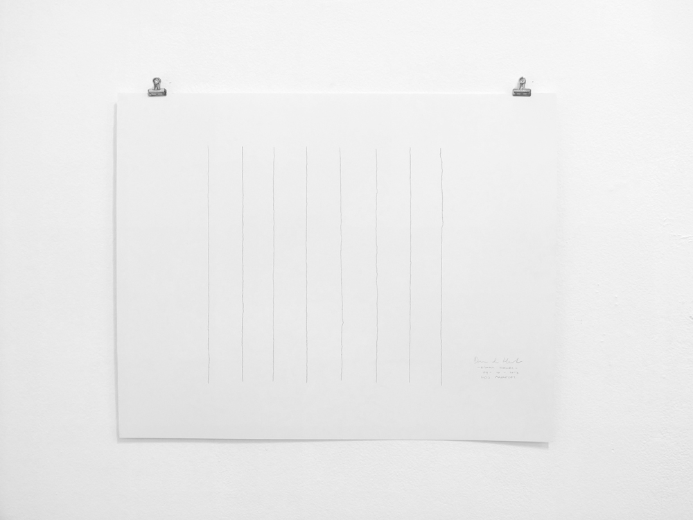 I've been making my own eight-hour drawings for a long time. These are drawings in which time is converted directly into images: eight lines of approximately 35 cm each. Each line is drawn in exactly one hour without lifting the pencil from the paper and without stopping. Due to the distance of the line and the time it takes, you are constantly balancing on the point of moving and standing still. The drawing is created by doing almost nothing, yet still making an effort that is quite challenging both mentally and physically. The result is a drawing that literally presents eight hours of my life and a Western European workday. My goal is to eventually have 365 of these drawings: one made every day of the year.
