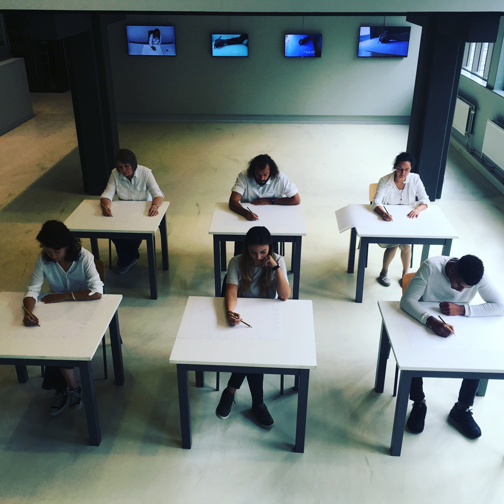 Your work is characterised by the fact that it often combines contradictory ideas in a single work. You often reflect on the art world and its key concepts: creativity, originality and market forces. A good example of this can now be seen at Frank Taal in the documentary about the eight-hour drawing factory, for which you hired six people to draw exactly eight lines over the course of eight hours. At the end of the day, you have six identical drawings, to which you have not contributed. How did you get the idea to start such a factory?