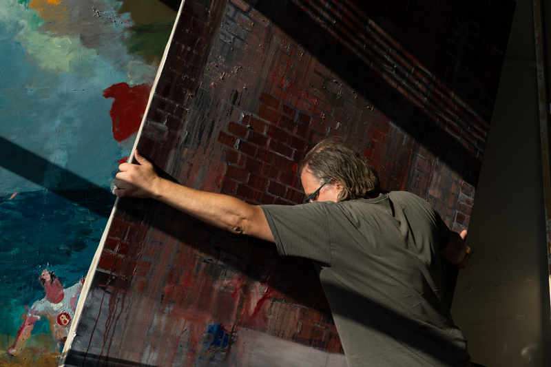 When I say a literary or narrative element, I don't necessarily mean that I have a finished story to tell, but rather that, as the viewer, you get a sense of dropping into the middle of a story you may not understand. My favourite writers – Kafka, Conrad, Beckett and Borges – often have a sense of absurdity about them. The loose ends just don't come together. I also find a painting at its most interesting when it is not (yet) quite finished. That's why my work often looks unfinished. In a sense, it's not finished either. Perhaps because it depicts a world that is also unfinished.