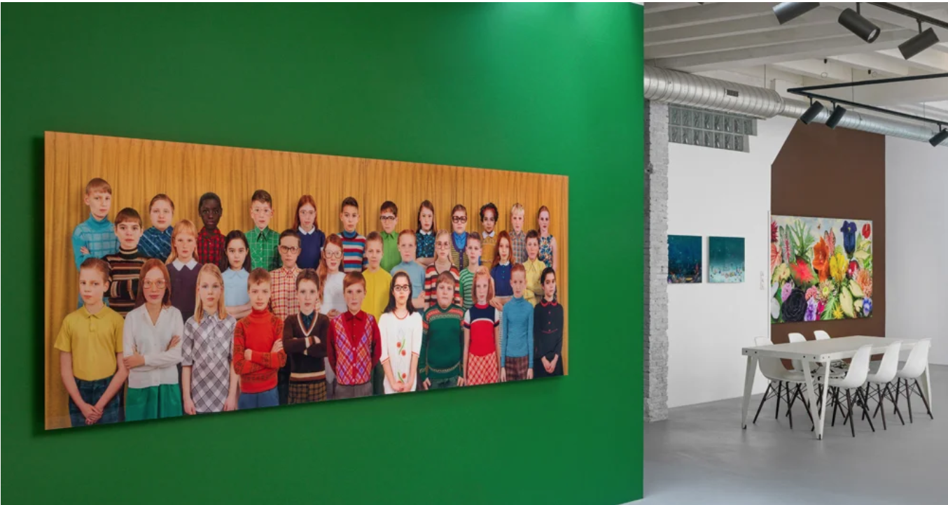 Toch heeft Van Empel het set- en kostuumdesignvak nooit helemaal verlaten. Op een van de vroegste werken die in Making Nature te zien is, is Generation #1 (2010), een wandvullende klassenfoto van de basisschool. Allemaal gestoken in bonte jaren ’70 kleren van alle seizoenen. We zien polo’s en zomerse overhemden naast coltruien en vesten.