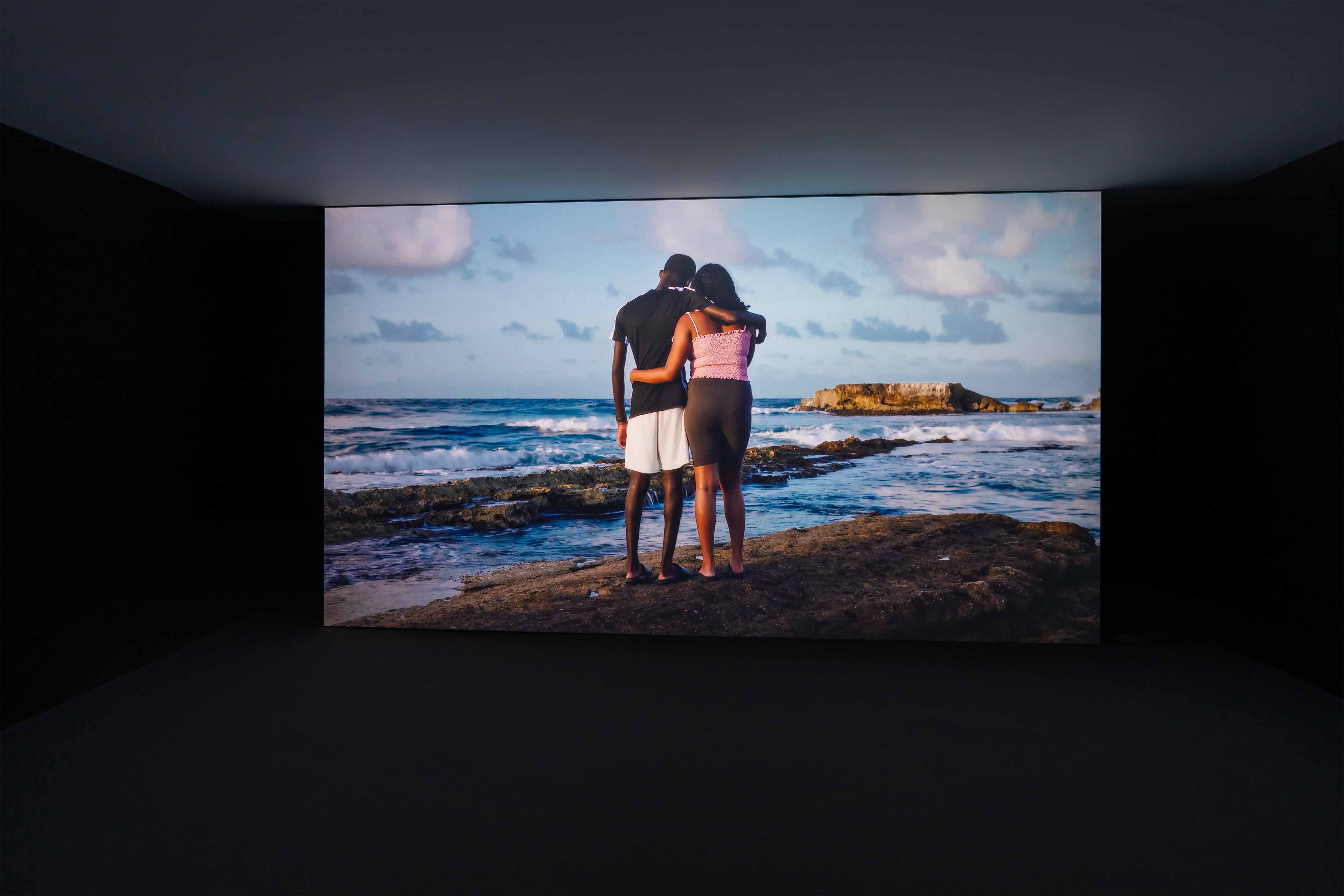 In het videowerk ‘Kant’i-Laman’ van Gilleam Trapenberg (vertegenwoordigd door Galerie Ron Mandos) kijk je uit over de kust van Curaçao, waar twee mensen elkaar omhelzen terwijl de zee onvermoeibaar tegen de kust slaat. Geluiden van wind, stemmen en golven groeien langzaam en trekken je steeds verder het beeld in, ergens tussen werkelijkheid en droom. Trapenberg toont het eiland niet als exotisch decor, maar als een levende, gelaagde plek waarin schoonheid en geschiedenis nauw met elkaar verweven zijn.