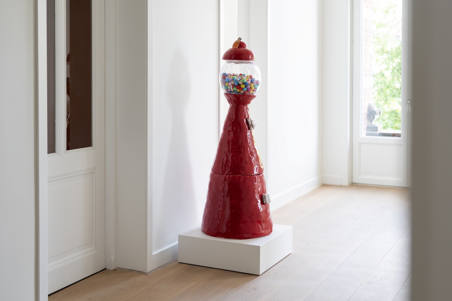 Verspreid door het gebouw duiken overal keramische werken van Koos Buster (vertegenwoordigd door Vriend van Bavink en gastkunstenaar bij Galerie Fleur & Wouter) op. Ze lijken op het eerste gezicht misschien onderdeel van de inventaris: een brandalarm, een kauwgomballenautomaat, een EHBO-kist, een beveiligingscamera, tot je merkt dat alles van klei gemaakt is. Herkenbaar genoeg om te glimlachen, vreemd genoeg om twee keer te kijken. Met zijn ruwe, vrolijke stijl tilt Buster het alledaagse op tot iets wonderlijks en laat hij zien hoe zelfs de meest gewone voorwerpen persoonlijkheid kunnen krijgen.
