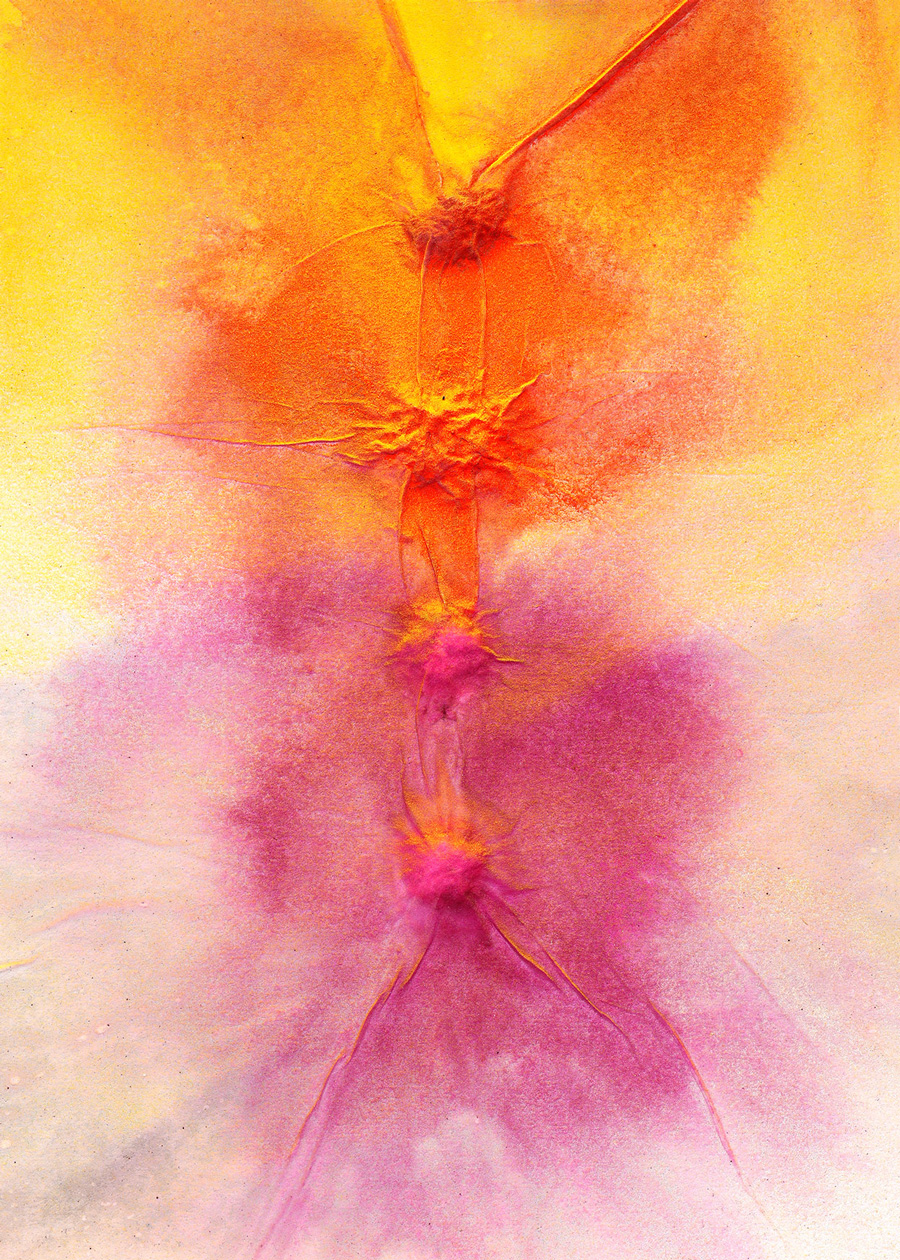 In deze serie zitten verwijzingen naar lichamelijkheid en sensualiteit, vandaar dat ik steeds bij dat kleurenpalet uit ben gekomen. Deze kleuren worden ook eerder als 'vrouwelijk' ervaren, wat past bij de thematiek van die werken.