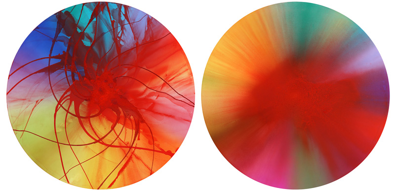 Vjosa verwijst naar de laatste grote wilde rivier in Europa, vrij stromend en kronkelend door zuid-Albanië, zonder dammen of kanalisatie. Croc verwijst naar de krokodilachtige verfhuid van dit papierwerk. De serie ronde schilderijen genaamd Joseph's Dreamcoat is geïnspireerd op het Bijbelse verhaal van Jozef die een veelkleurige mantel krijgt van zijn vader. Die bontgekleurde mantel staat symbool voor zijn voorkeurspositie binnen het gezin. Zijn broers zijn jaloers en haten hem. Uiteindelijk verkopen ze Jozef als slaaf en gebruiken zijn mantel om hun vader te misleiden: ze besmeuren hem met bloed en doen alsof Jozef door een wild dier is gedood. Het is een Bijbelse vertelling over jaloezie en afgunst. Voor mij is het fascinerende aan dit verhaal dat de kleurrijke mantel blijkbaar te veel is. Het is de druppel die de emmer doet overlopen. Ik zie hierin een parallel met de westerse kijk op kleur vandaag de dag: uitbundigheid en felheid roepen nog steeds negatieve associaties op, beïnvloed door een christelijke moraal van nederigheid en terughoudendheid.