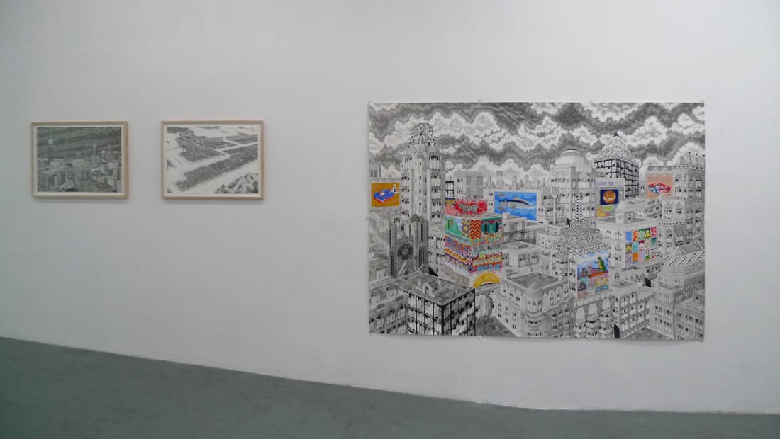 Dat geldt niet voor de bibliotheken en stadsgezichten van Cornelissen, dat zijn eerder mentale ruimtes waarin de kijker kan verdwalen. Uit de landschappen van Zoete, waarin windmolens, schuren en akkers een samenhangende biotoop vormen, spreekt een verlangen naar de zelfvoorzienende mens die in harmonie met de natuur leeft. De realistische en uiterst gedetailleerde metropolen die Rik Smits (1982) tekent, zijn onbewoond op een aantal mythologische dieren na. Toch gaat zijn werk juist over de menselijk behoefte om te streven naar een betere versie van zichzelf of de overtreffende trap daarvan: het onmogelijke.