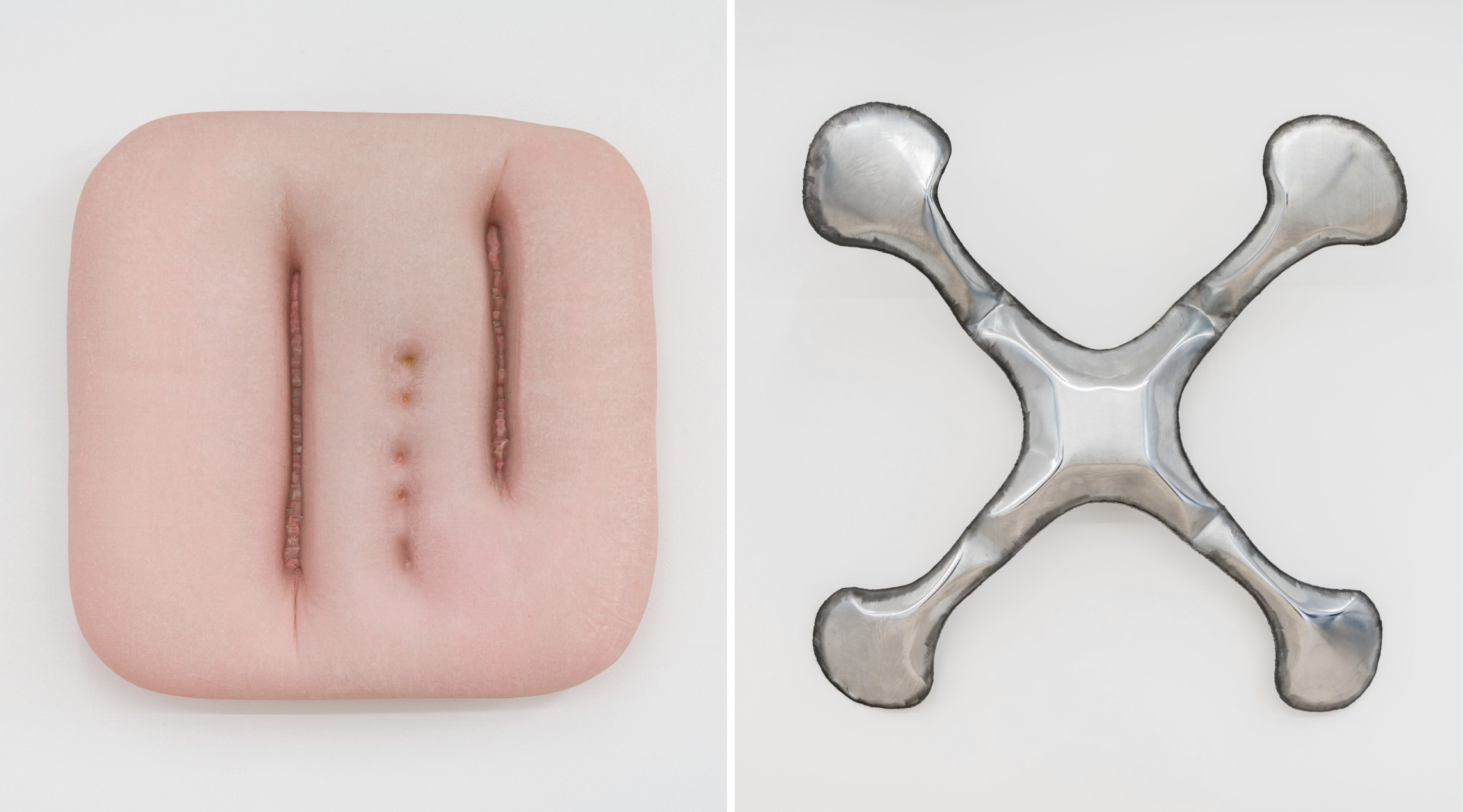 Jens Kothe en Walter Wathieu vertegenwoordigen twee uitersten binnen het sculpturale domein. Jens Kothe’s werk is doordrongen van lichamelijkheid en tactiliteit; zijn structuren lijken bijna te ademen, met een vleselijke, organische kwaliteit. En waar Kothe’s sculpturen aanvoelen als een tweede huid, met plooien en vlezige texturen, ontstaan die van Walter Wathieu uit industriële bewerkingen: gelast en opgeblazen met waterdruk. Ondanks hun koele, metalen oppervlak schuilt er in de sculpturen ook een fragiele, elegante poëzie. “Door de twee verschillende praktijken naast elkaar te plaatsen, versterken ze elkaar nog meer,” vertelt galerist Oliver Barbé.