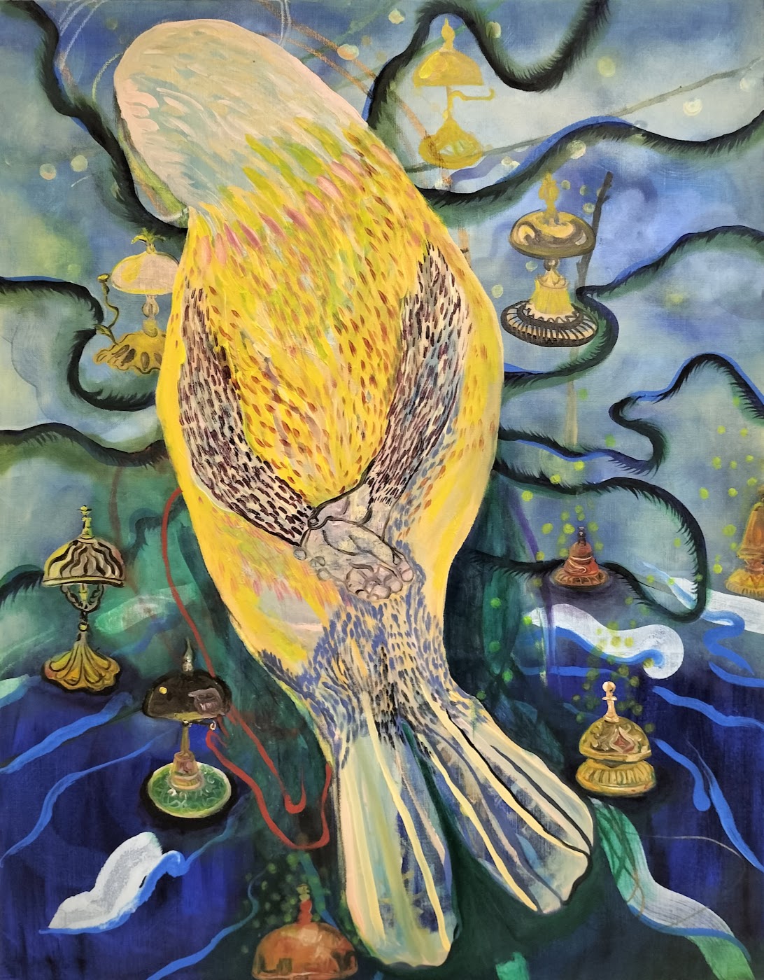 Op de doeken die je in Berlijn maakte zien we veel dieren, fantasiedieren, zoals Falkor uit The Neverending Story, en hotelbellen. Dat is een wonderlijke combinatie van elementen. Hoe ontstond die?